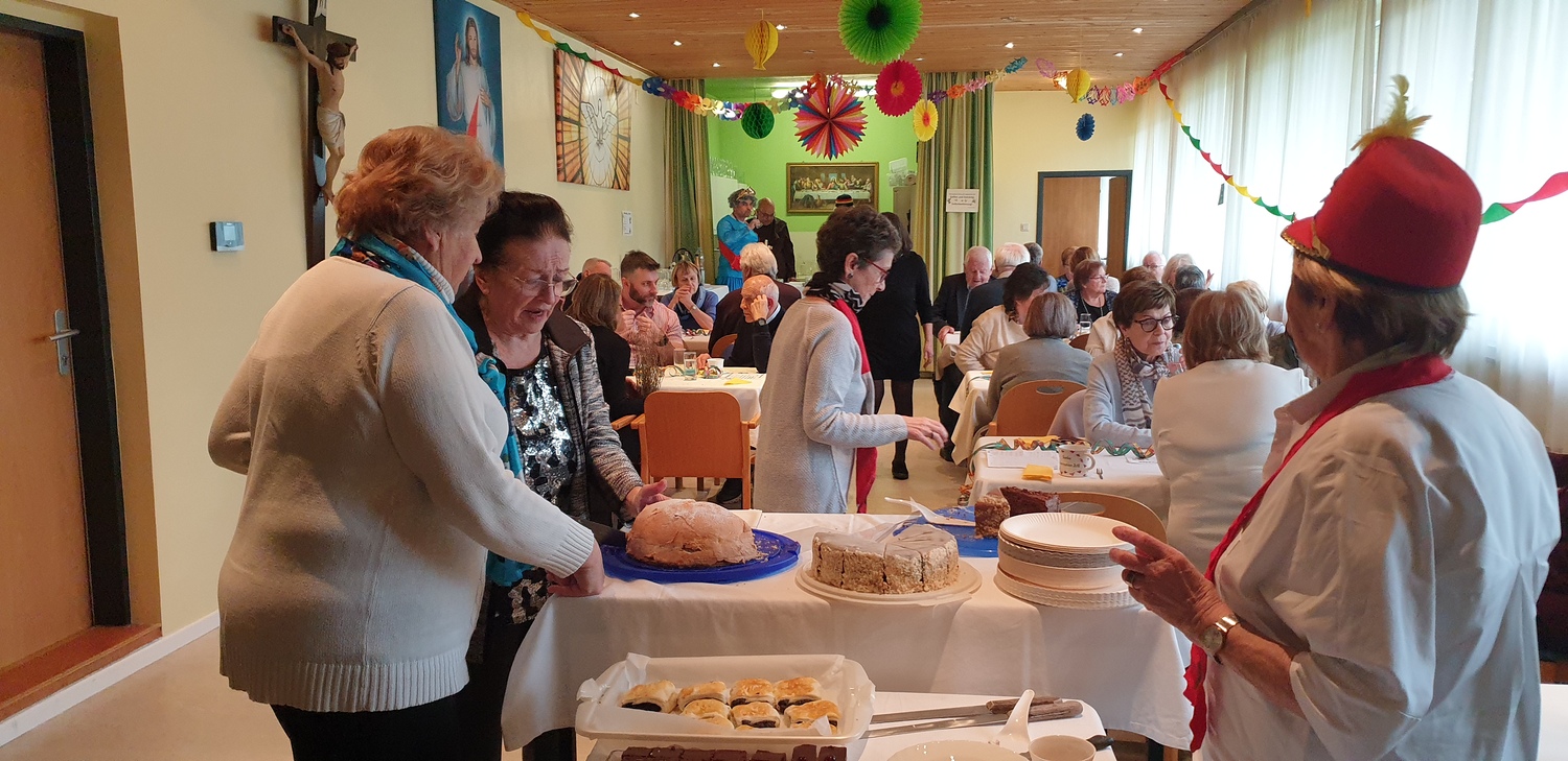 Am Faschingsonntag lädt die Pfarre Bad Sauerbrunn schon traditionell in den Kommunikationraum der Pfarrkirche, zu einem Pfarrcafé, das als Pfarrfasching gefeiert wird. Am 11. Feber 2024 nach der 10 Uhr Messe, die der Herr Pfarrer von Forchtenstein, Pfarrer Aby Mathew Puthumana MBA und Diakon Dr. Peter Zotti zelebrierten, war es wieder soweit. Die Pfarre Bad Sauerbrunn freute sich, die Messbesucher zum Pfarrfasching einzuladen.