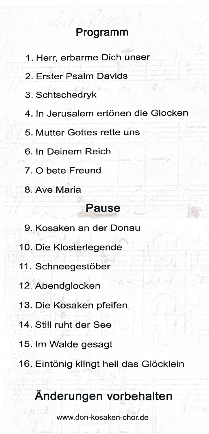 Am 21. April 2024 gastierte der Don Kosaken Chor Serge Jaroff® in der Kirche. Der Chor geht auf die Gründung durch Sege Jaroff (1923-1985) zürück der im Jahr 1985 89jährig verstarb.