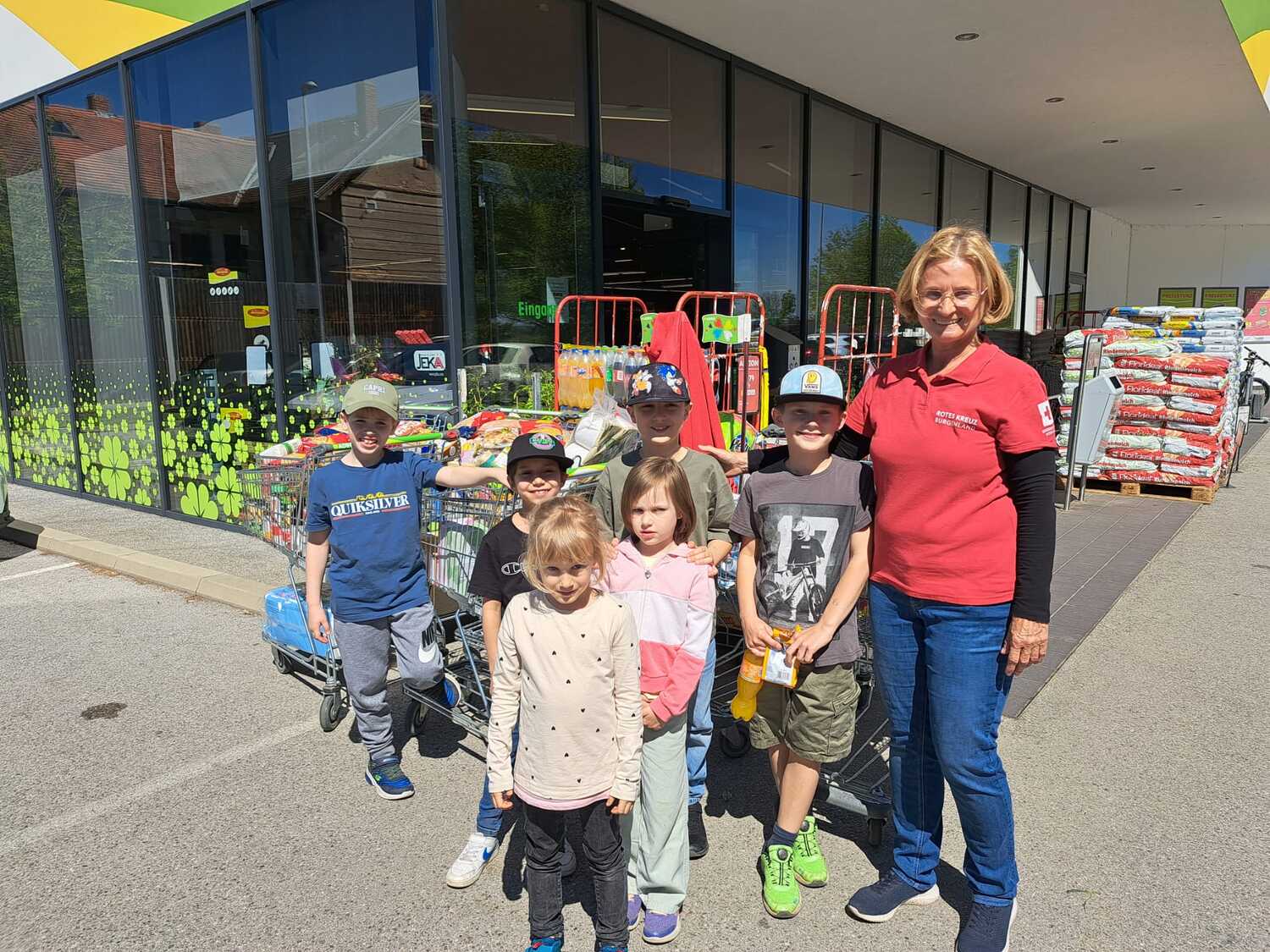 Die Erstkommunionkinder der Pfarre Bad Sauerbrunn haben sich entschlossen, hier mitzuhelfen. Am 27. April 2024 sammelten sie beim Kaufhaus ADEG in Bad Sauerbrunn.