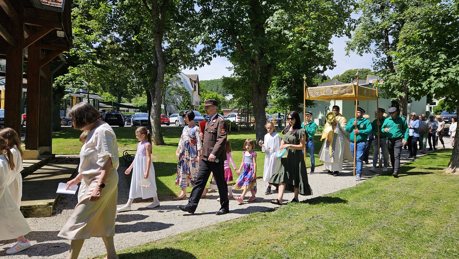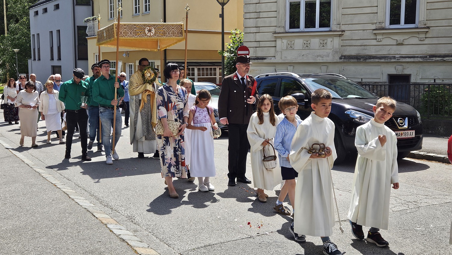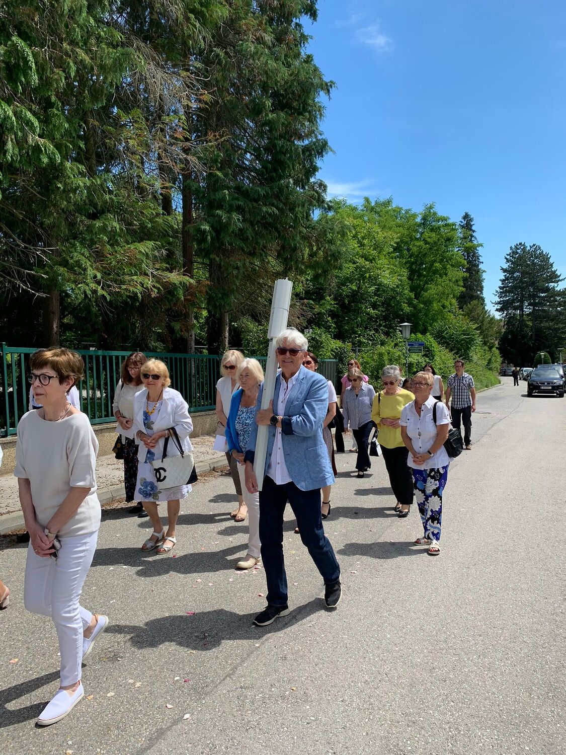 Auch wenn, wie es scheint, die Zeit der großen Prozessionen vorbei ist, nahmen sehr viele Messbesucher im Anschluss an die Hl. Messe an der Fronleichnamsprozession teil, die in den Ortskern über den Hauptplatz führte, durch Schulgasse, Kurpark und Rosarium, durch die Postgasse und über Hauptplatz und Kirchengasse wieder zurück in die Kirche.