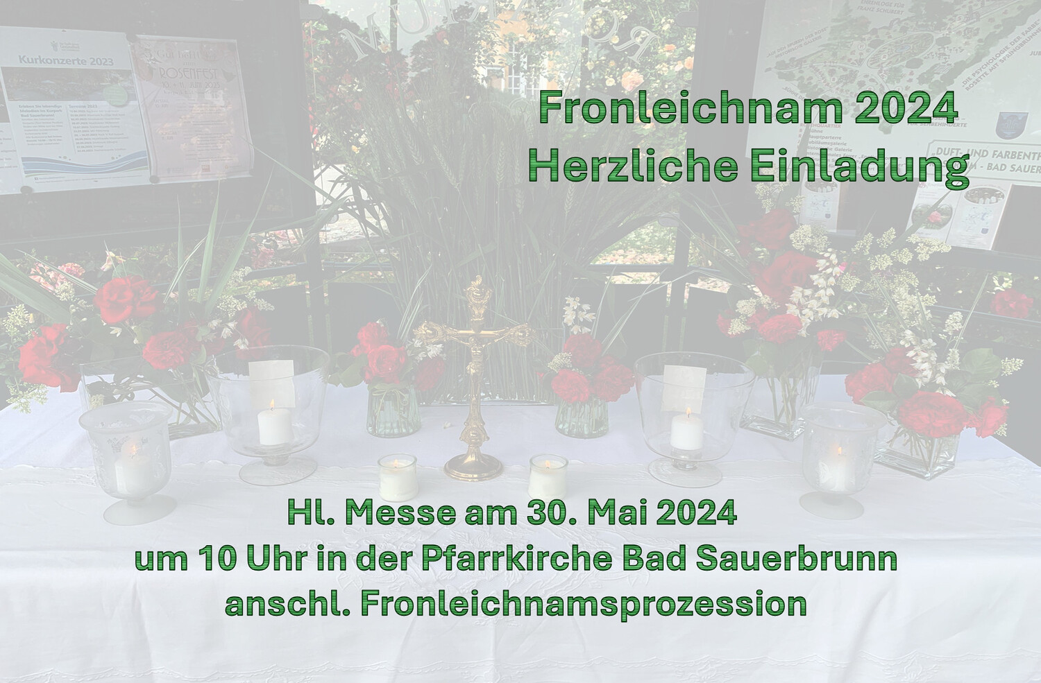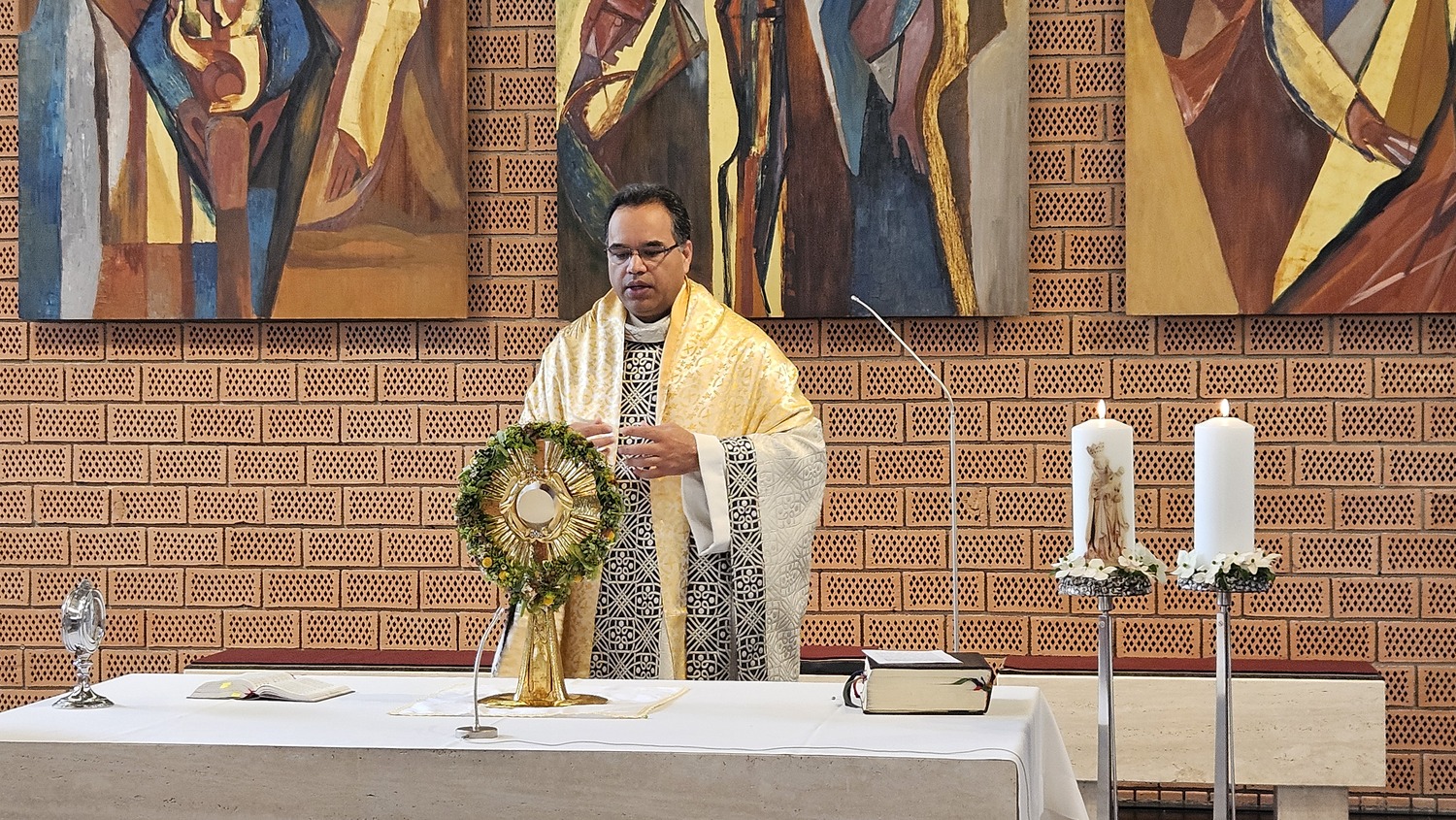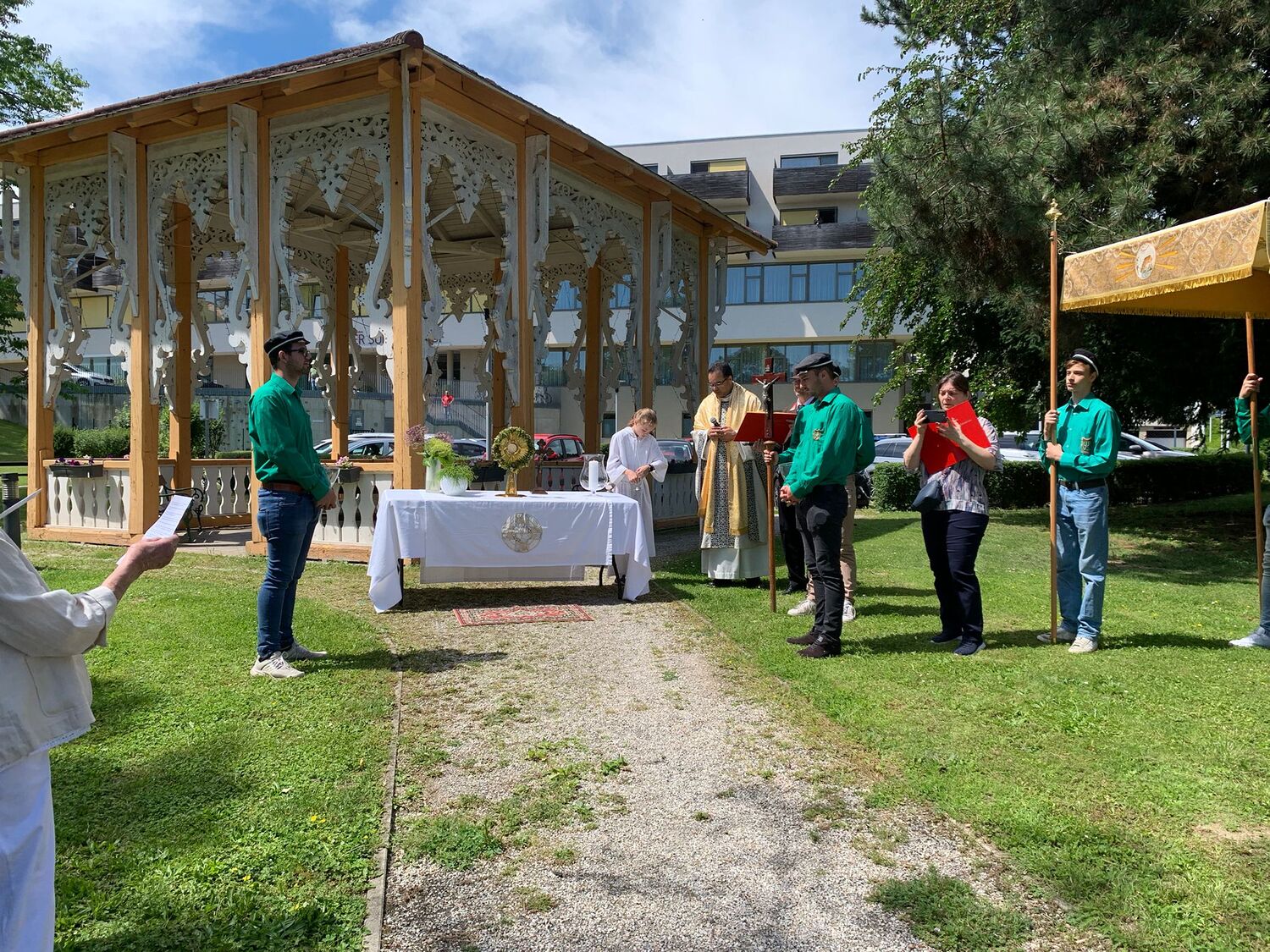 Für den 30. Mai, Fronleichnam, hatte die Pfarre Bad Sauerbrunn um 10 Uhr in die Pfarrkirche zur Hl. Messe und zur Fronleichnamsprozession eingeladen. Es waren sehr viele Gläubige der Pfarrgemeinde Bad Sauerbrunn und Gäste in die Kirche gekommen um Fronleichnam zu feiern. Auch eine Abordnung der Freiwillgen Feuerwehr von Bad Sauerbrunn und des Burchenvereines, konnte Pater Kuruvila zur Hl. Messe begrüßen.
