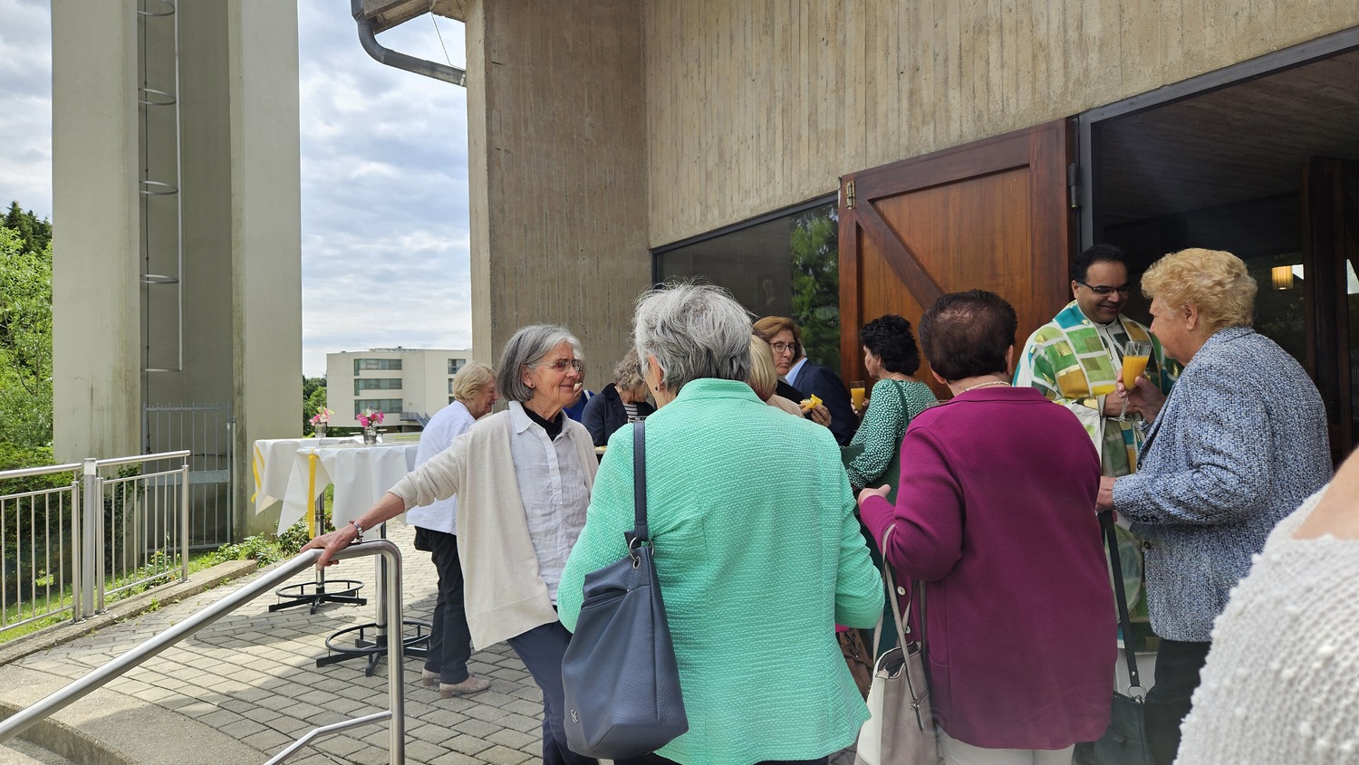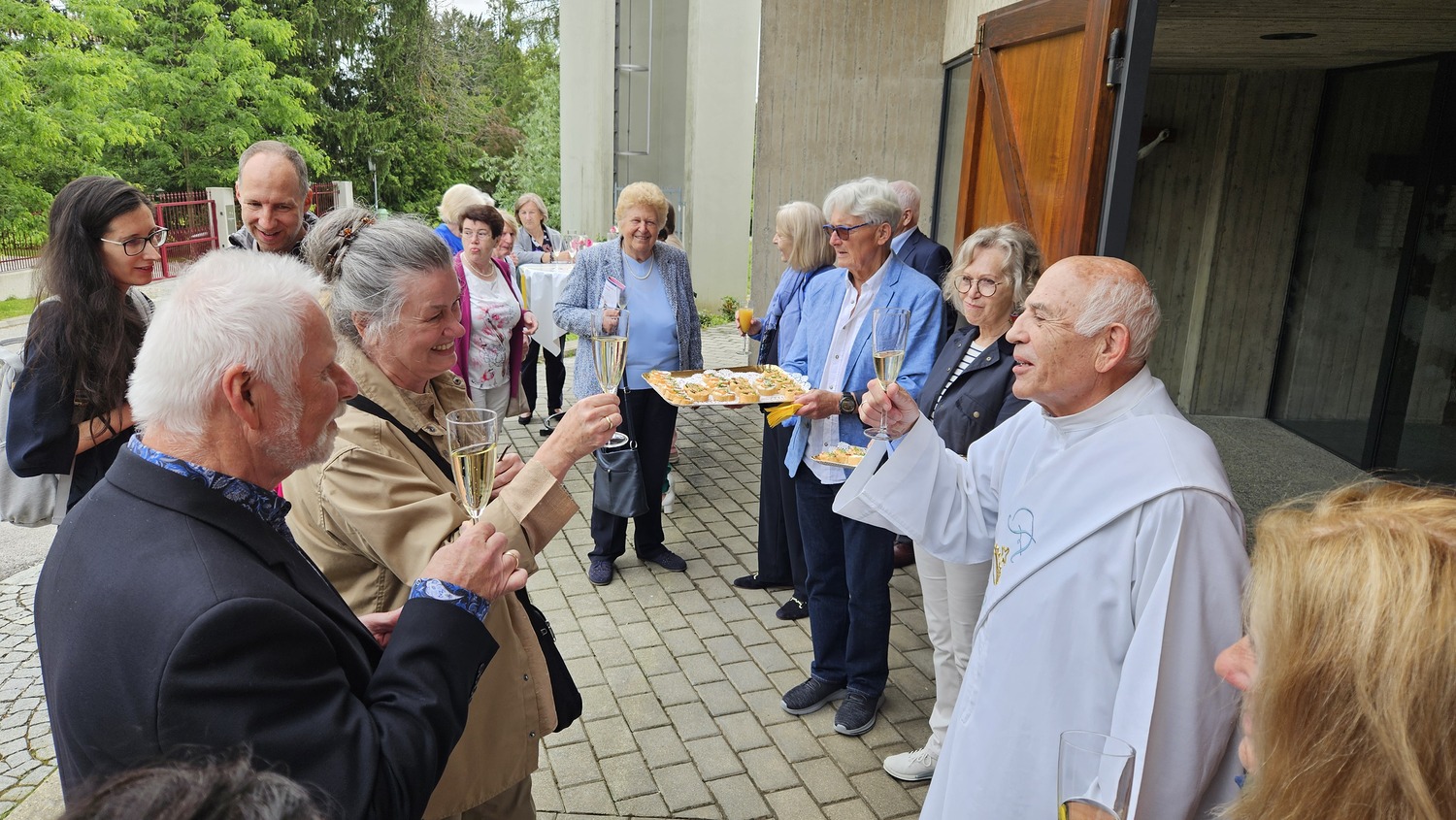Die heilige Messe am 2. Juni 2024 um 10 Uhr wurde von Pater Kuruvila und Diakon Dr. Peter Zotti zelebriert. Dass es eine besondere Sonntagsmesse war, merkte man bald. Vor der Pfarrkirche waren schön geschmückte Tische aufgestellt und es war für eine Agape vorbereitet.