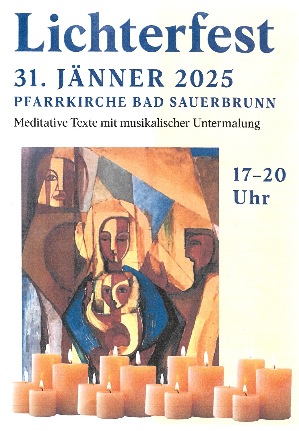 Am 31. Jänner 2025 von 17-20 Uhr lud die Pfarrgemeinde Bad Sauerbrunn zum Lichterfest. Nach einem Jahr Pause, das letzte Lichterfest war 2023, wurde ein Lichterfest organisiert, bei dem mehrere hundert Kerzen verwendet wurden wurden. Aber nicht nur Kerzen standen im Mittelpunkt, sondern es wurden auch sehr wertvolle Exponate ausgestellt. Durch die Dunkelheit im Kirchenraum, das Kerzenlicht, die mit Kerzen beleuchteten Gegenstände und die eingespielte Musik herrschte in dem Raum ein besonderes Ambiente.