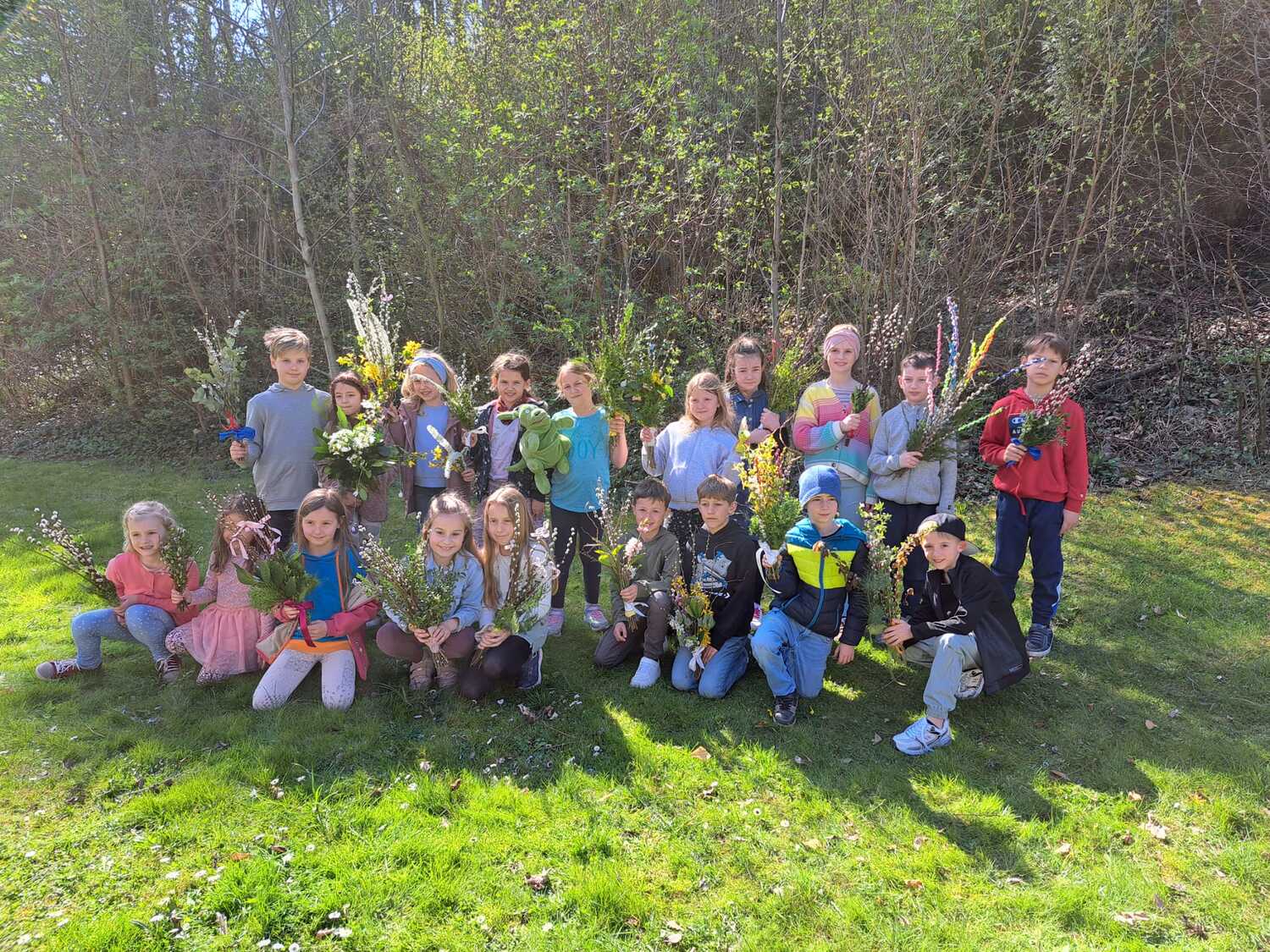 Stolz zeigeten die Erstkommunionkinder die schönen Palmsträuße die entstanden sind.