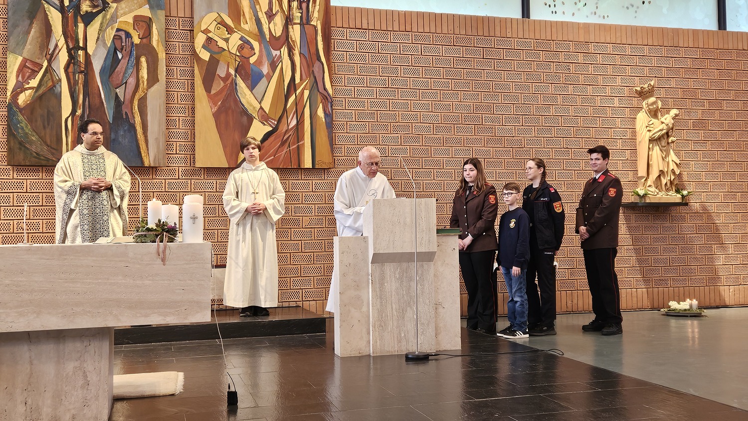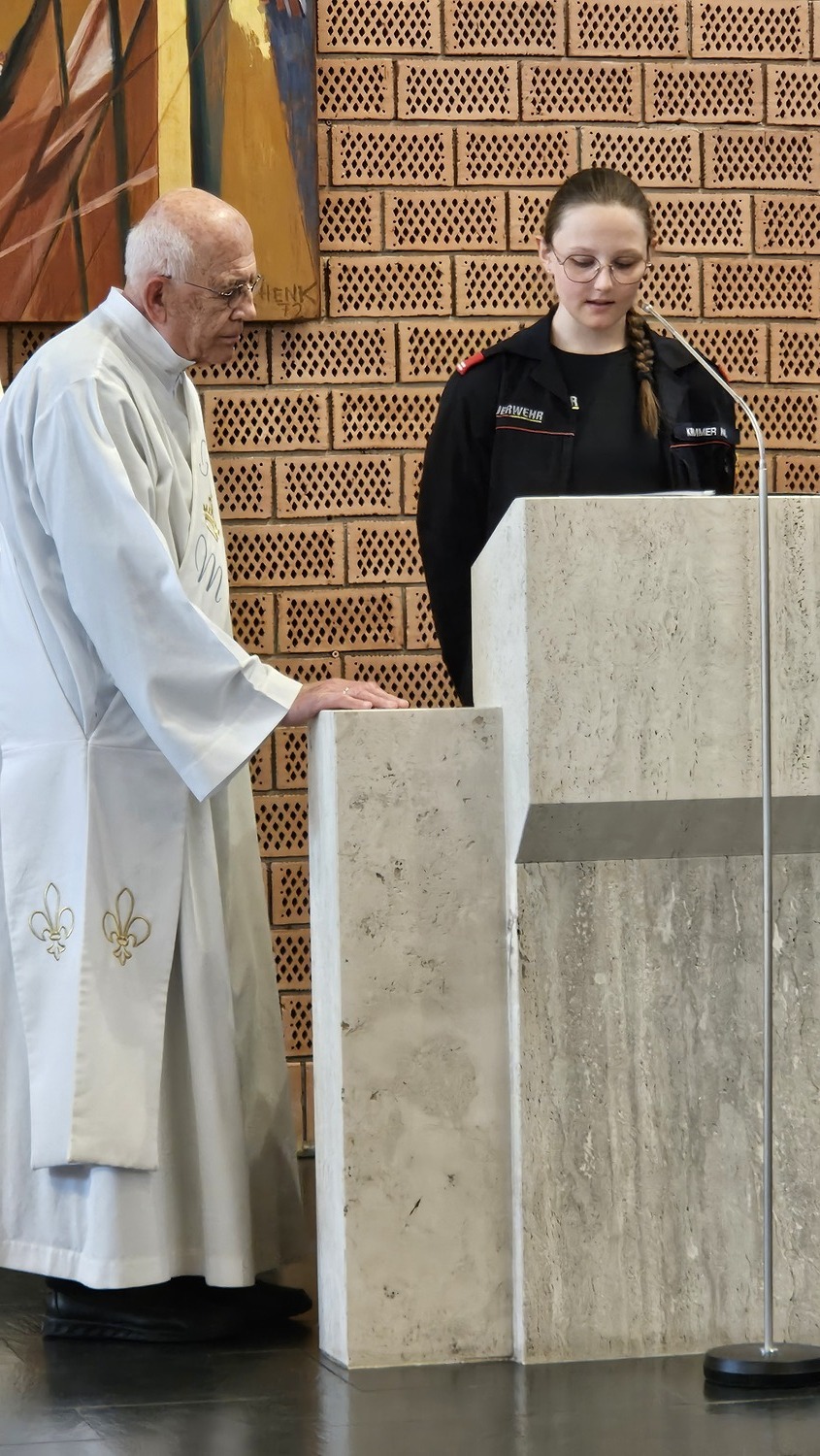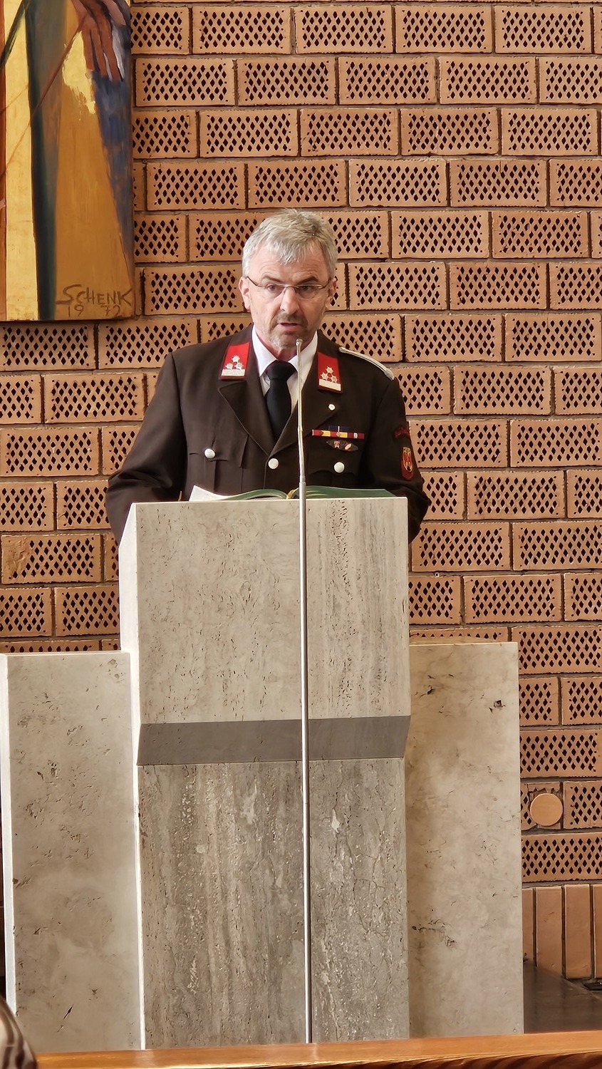 Mehrfach bedankte sich Pater Kuruvila bei den Mitgliedern der Freiwilligen Feuerwehr für deren Freiwilligendienst für die Gemeinschaft. Dieser freiwillige Dienst werde von den Feuerwehrfrauen und -männern oft auch unter Einsatz des eigenen Lebens geleistet, führte Pater Kuruvila in der Predigt weiters aus.