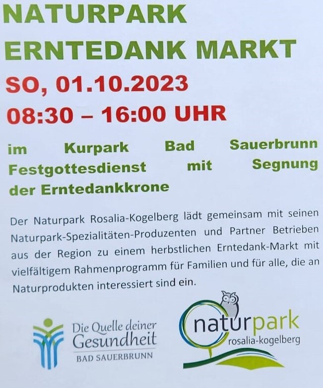 Im Anschluß an den Festgottesdienst findet eine Veranstaltung von Naturpark Rosalia-Kogelberg und der Gemeinde mit einem sehr interessanten Programm statt.