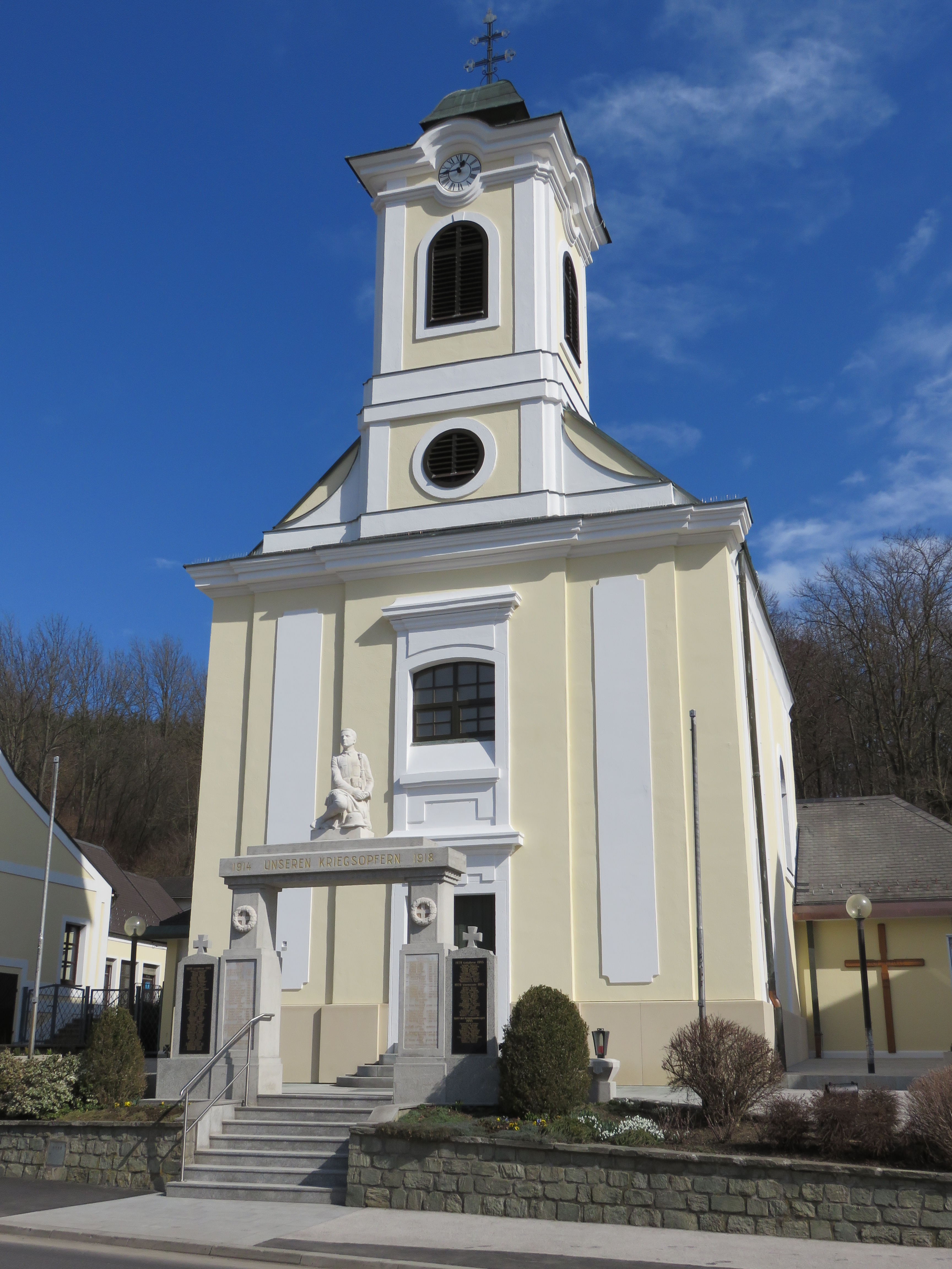 Errichtet 1600, Matriken 1711; Pfarrkirche: zur Kreuzerhöhung, erbaut 1797, erweitert 1979/80, bened.