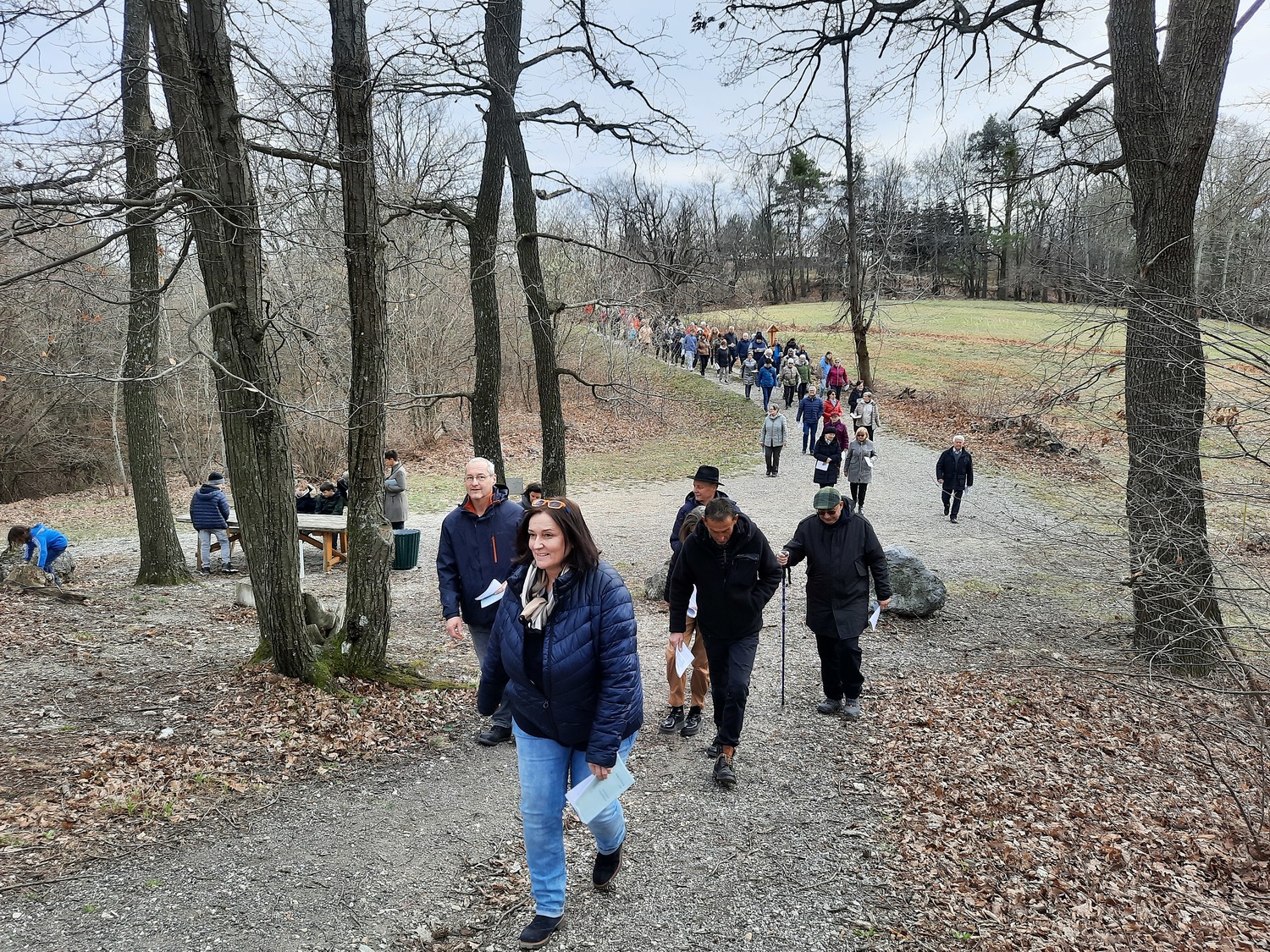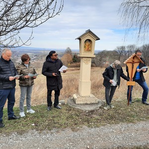Am dritten Fastensonntag trafen sich rund 90 Pfarrangehörige, um gemeinsam bei den einzelnen Stationen an den Leidenweg Jesu zu denken. Mit dem Kreuz voran die Kreuzwegstsationen in der Natur zu gehen, war bestimmt für alle Teilnehmer eine gute Vorbereitung auf das kommende Osterfest.