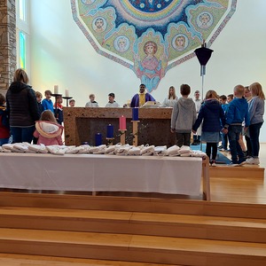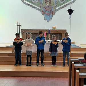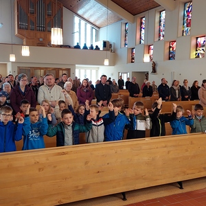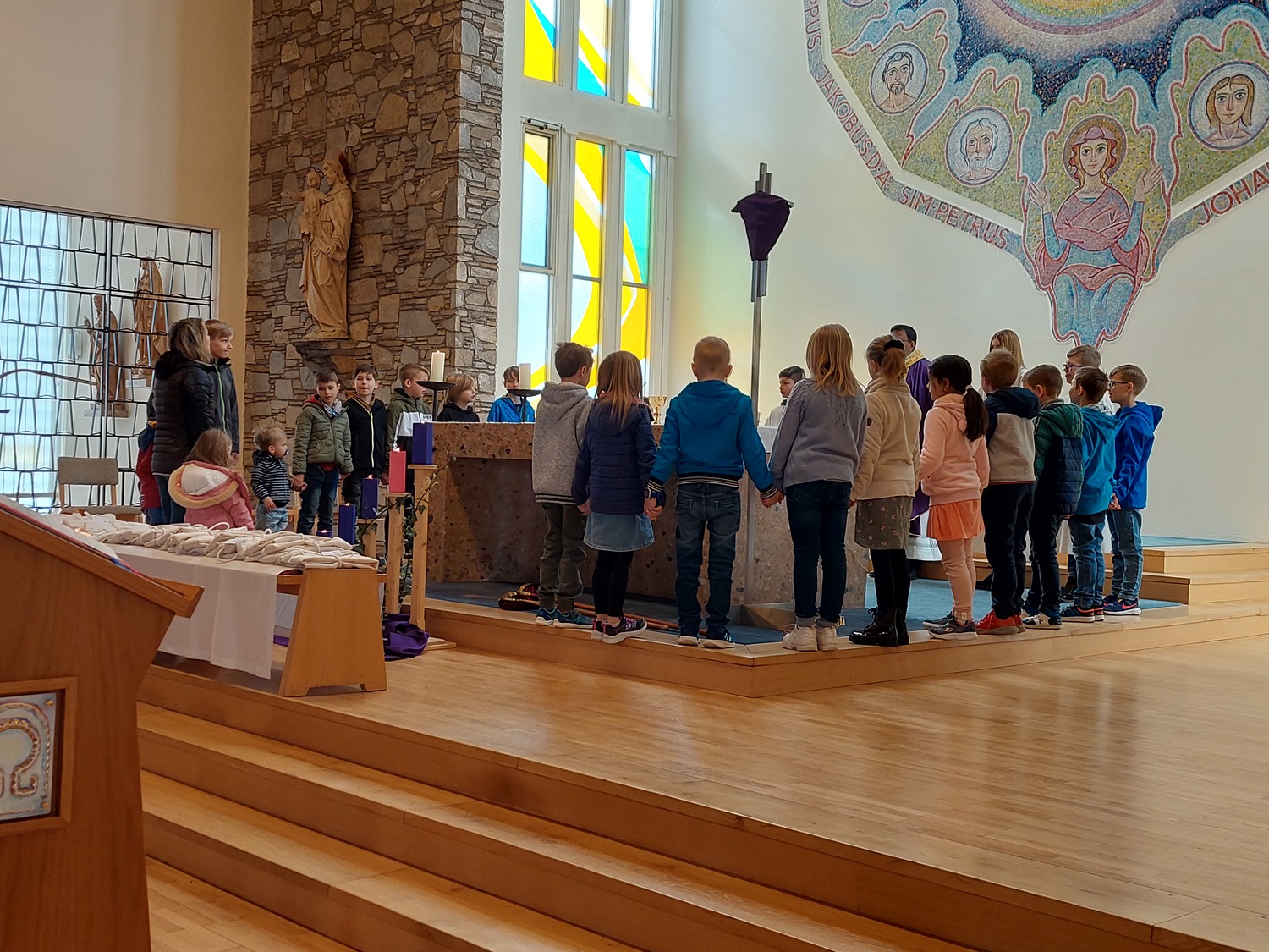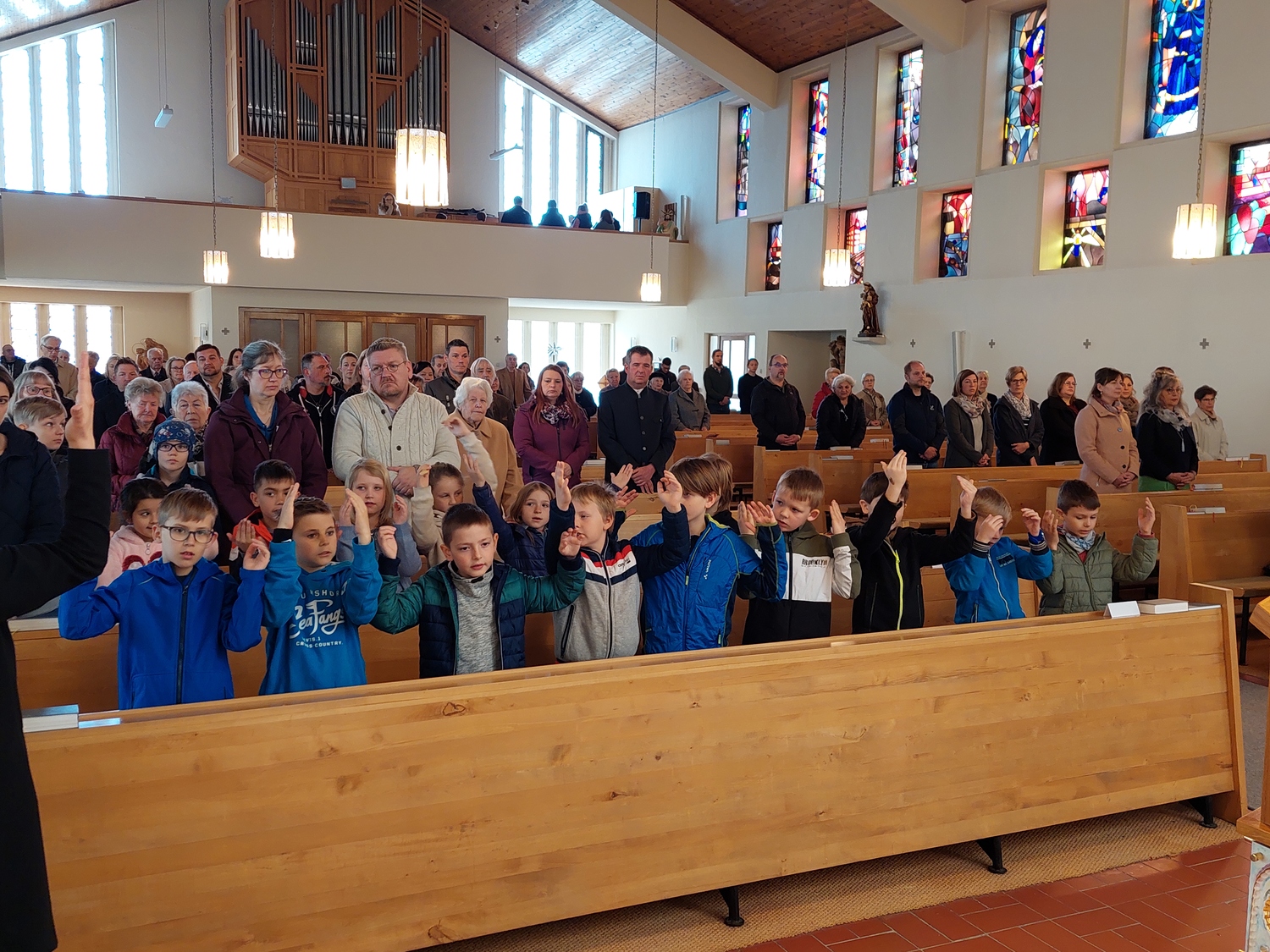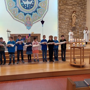 Am 5. Fastensonntag wurden im Rahmen einer feierlichen Messe, nach der Segnung durch P. Jomon, die weißen Kutten an die Erstkommunionkinder übergeben.