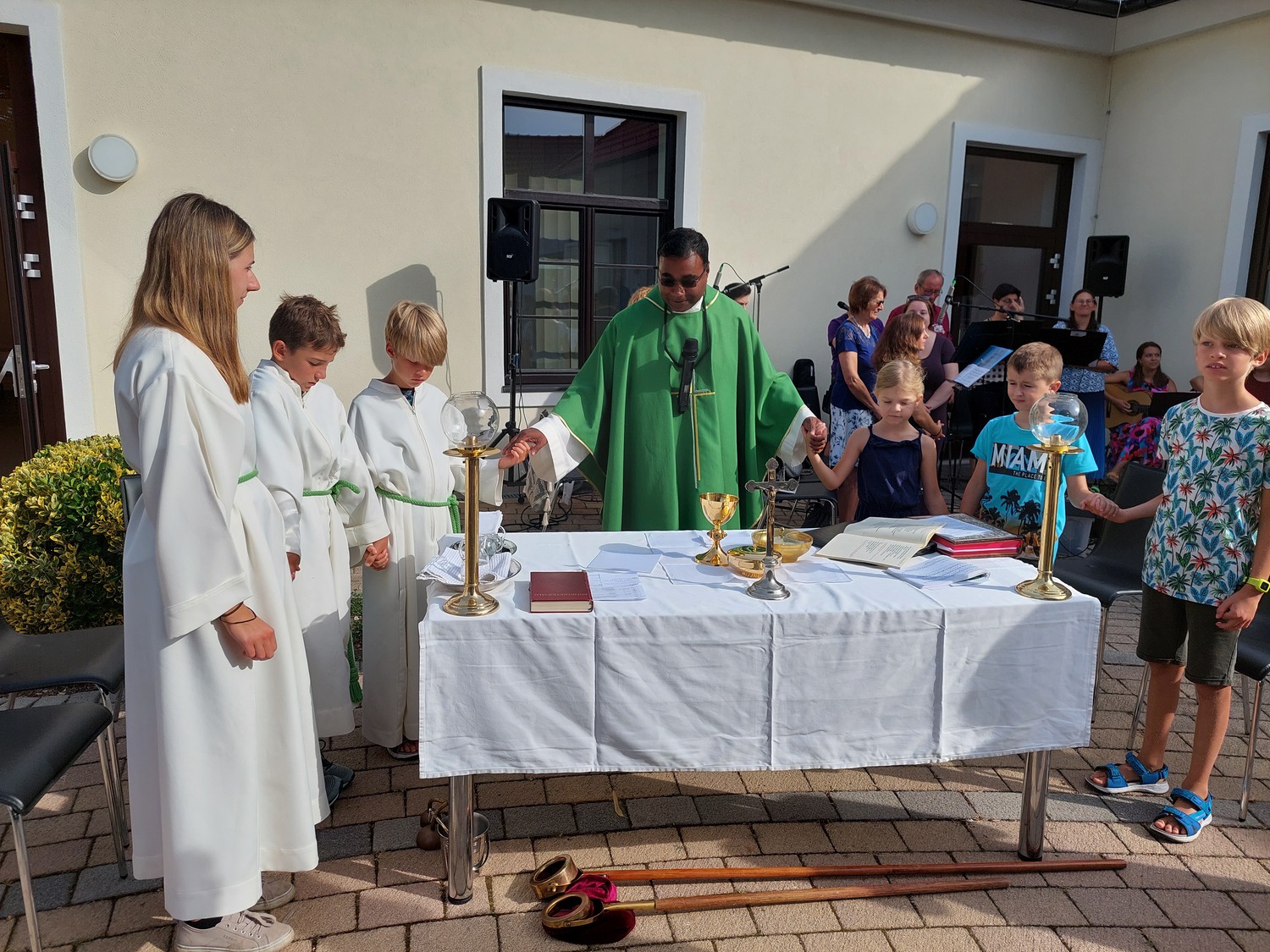 Das Pfarrfest wurde auch dieses Jahr wieder mit viel Engagement organisiert. Zusammen mit P. Jomon wurde ein Festgottesdienst gefeiert, welcher von der Gruppe Jubilate musikalisch gestaltet wurde. Danach folgte ein Frühshoppen mit dem Musikverein Wiesen. Bis in die späten Abendstunden konnten sich die Gäste bei Speis und Trank, am Nachmittag mit Live-Musik von Gipsy, gut unterhalten.