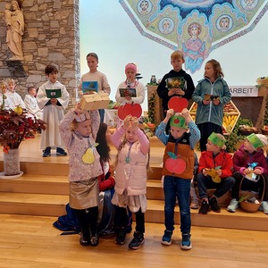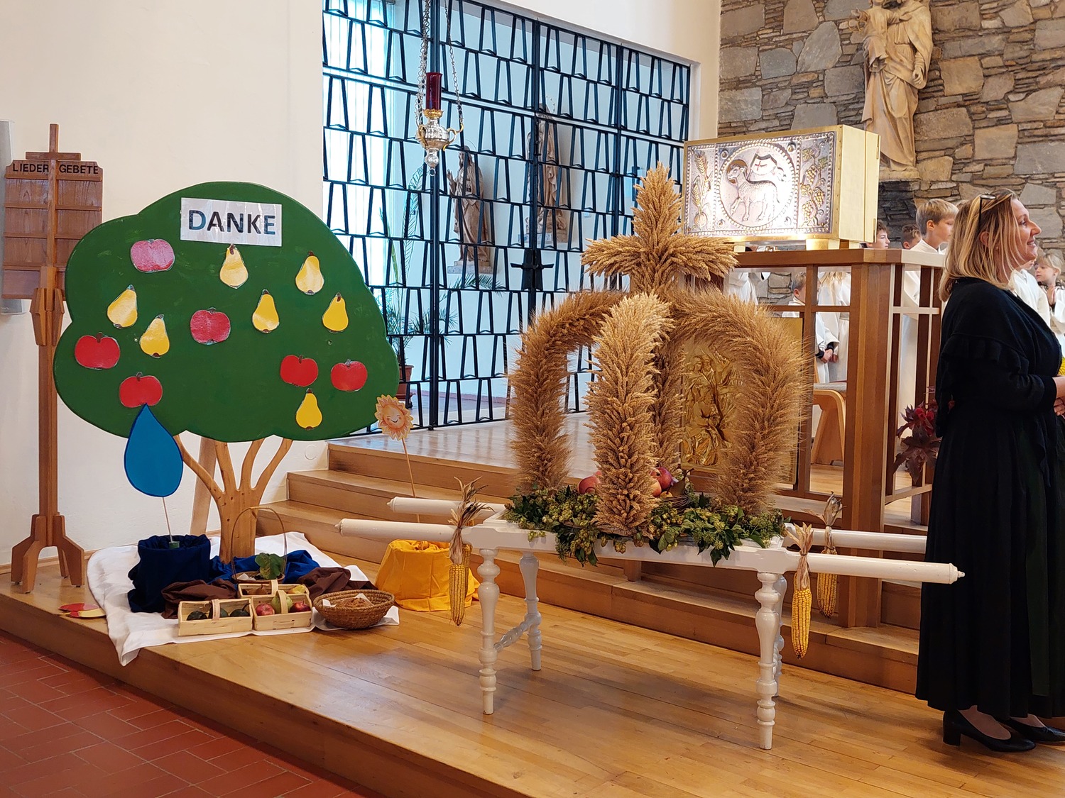 An diesem Tag dankte die Pfarre nicht nur für die Erntegaben, sondern ein großes Dankeschön erging von P. Jomon und den Messbesuchern an fünf Kinder, die sich neu für den Ministrantendienst gemeldet haben.