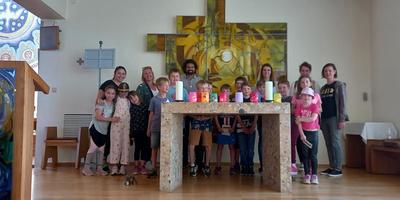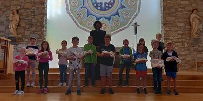 Erstk.vorbereitung - Übergabe weiße Gewänder und Kreuze