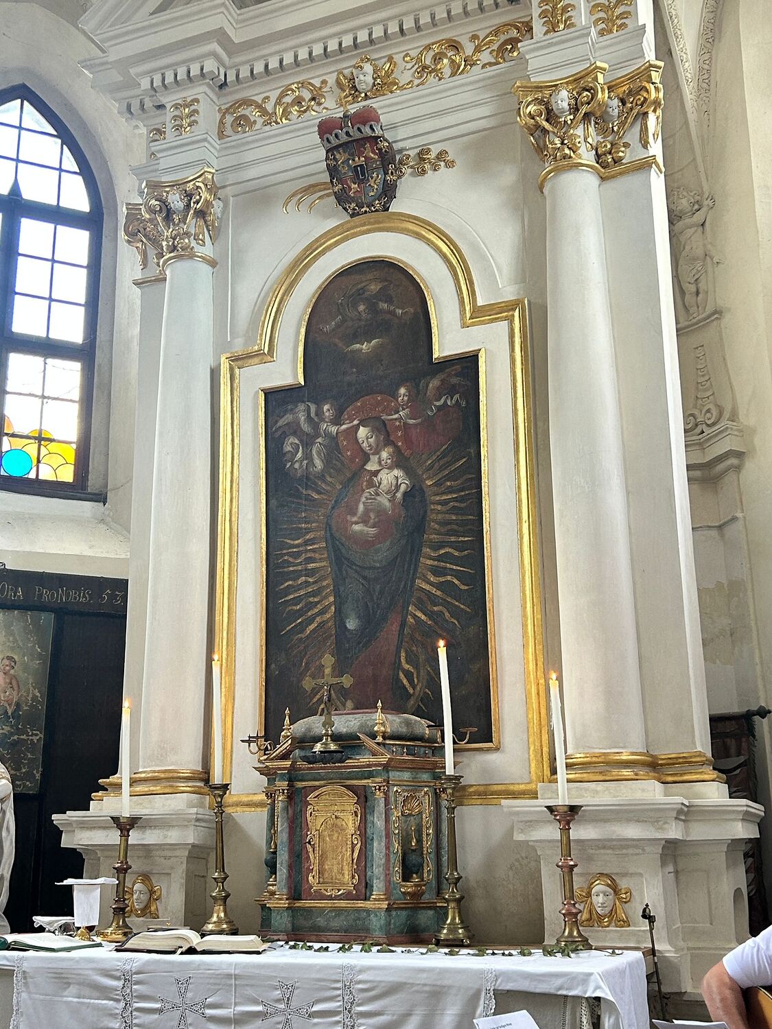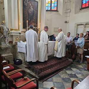 Beim Gottesdienst am 11. Juli in der Schlosskapelle Kobersdorf nahmen rund 80 Frauen und Männer teil. Das Wetter zeigte sich von seiner besten Seite. Die Hitze ging kurz vor Messebeginn merklich zurück, die Sonne war wolkenverhangen und der sich ankündigende Regen fiel erst einige Zeit später vom Himmel.