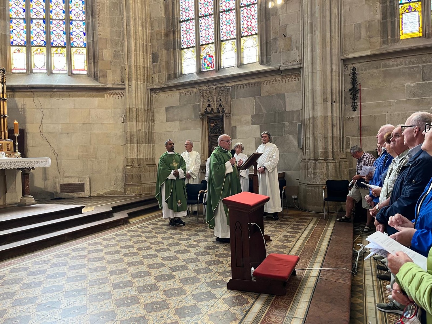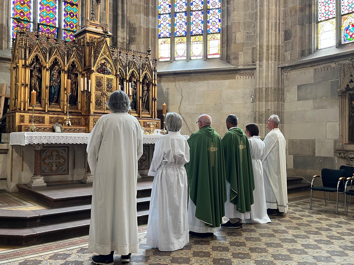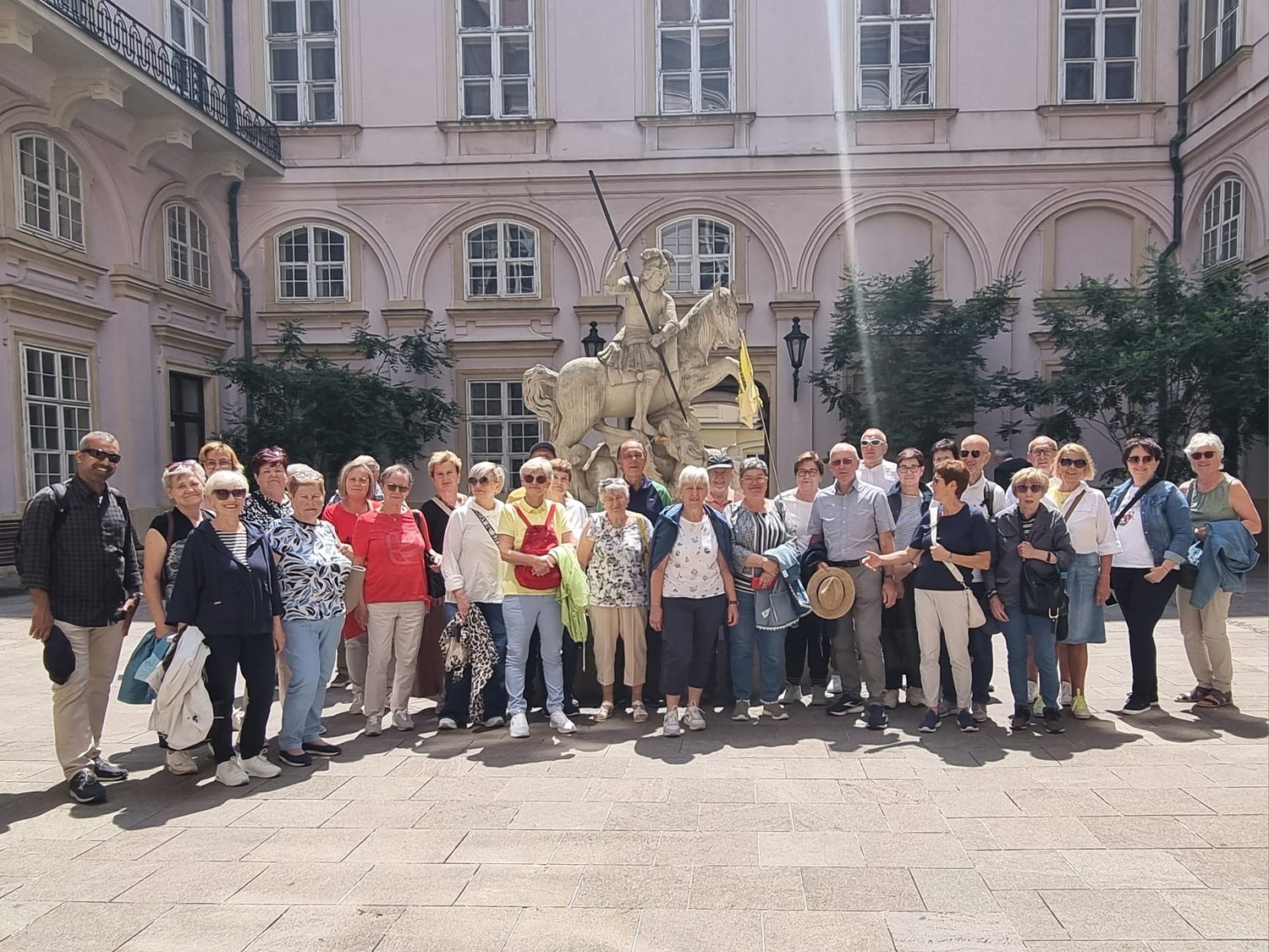 Um 10.00 Uhr feierten Dechant Shinto und Pfarrer Mück mit dem Pfarrverband einen feierlichen Gottesdienst im Martinsdom von Bratislava, welcher von Christa Reiner und mehreren Sängerinnen musikalisch gestaltet wurde. Nach einer Domführung startete – in 3 Gruppen – der erste Teil der Stadtführung. Besichtigt wurden u. a. die Venturgasse, die Michaelergasse mit dem Michaelertor, der Hauptplatz mit dem Alten Rathaus und dem Maximilianbrunnen sowie die Alte Oper. Ein Höhepunkt war die Außen- und Innenbesichtigung des Primatialpalastes.
