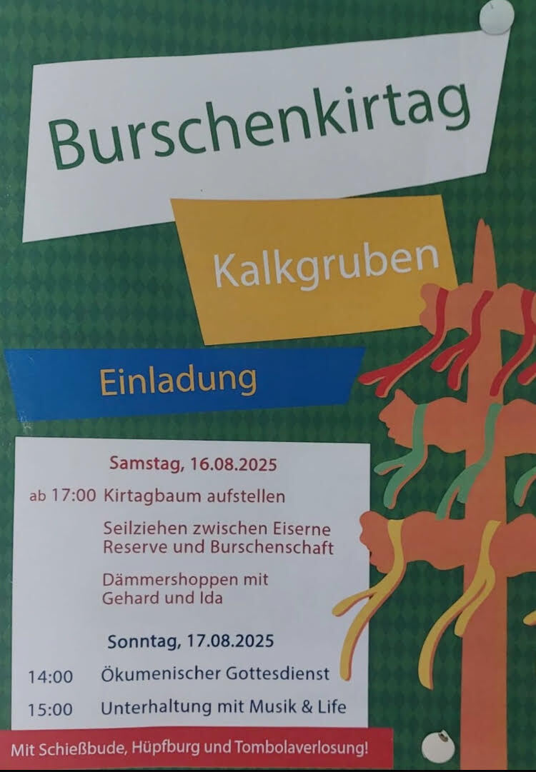 Am Sonntag, dem 17. August, wurde im Rahmen des traditionellen Burschenkirtags in Kalkgruben ein besonderer ökumenischer Gottesdienst gefeiert. Pfarrer Andreas Binder und Pfarrer Shinto Michael leiteten gemeinsam die stimmungsvolle Feier, die nicht nur die Herzen der Anwesenden bewegte, sondern auch ein starkes Zeichen für gelebte Ökumene setzte.