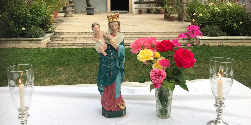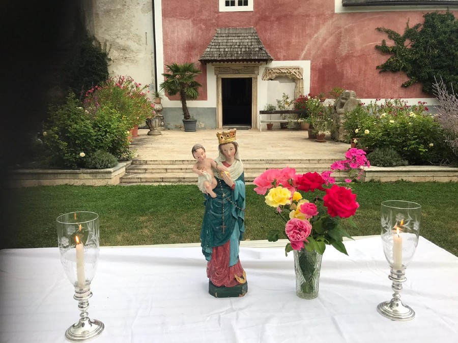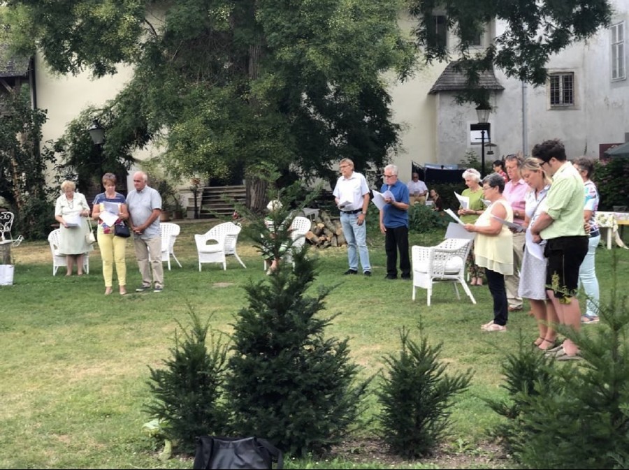 Zum Abschluss des großen Frauentages wurde eine Marienandacht im Schloßgarten gefeiert.