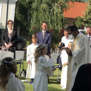 Es war ein besonders schönes Fest, das auf Grund der Corona- Pandemie im Freien vor der Kirche stattfand.