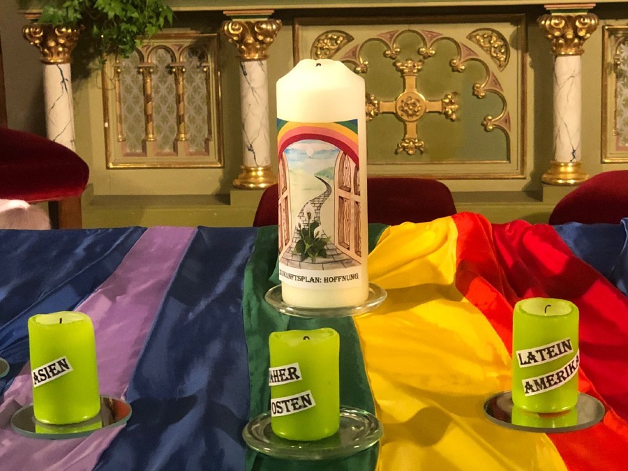 Das Thema des Gottesdienstes sprach von der Verheißung Gottes. Wir wurden eingeladen herauszufinden, wie diese Verheißung von Freiheit, Vergebung, Gerechtigkeit und Gottes Frieden, uns Hoffnung und Zuversicht, schenken kann. Gerade jetzt in dieser schwierigen Zeit ist es wichtig einander Mut zu machen und Freude zu schenken.