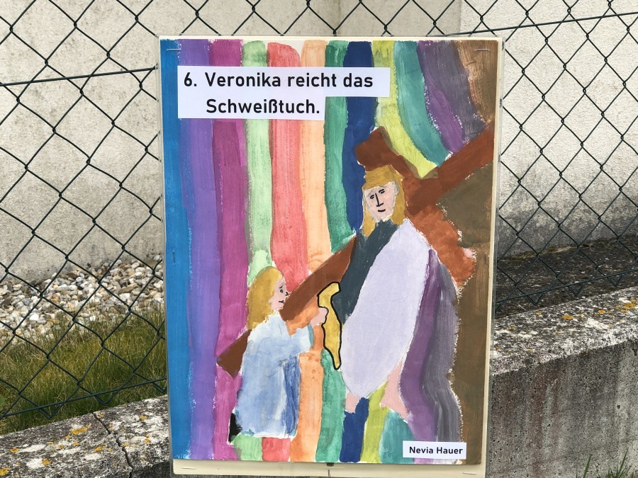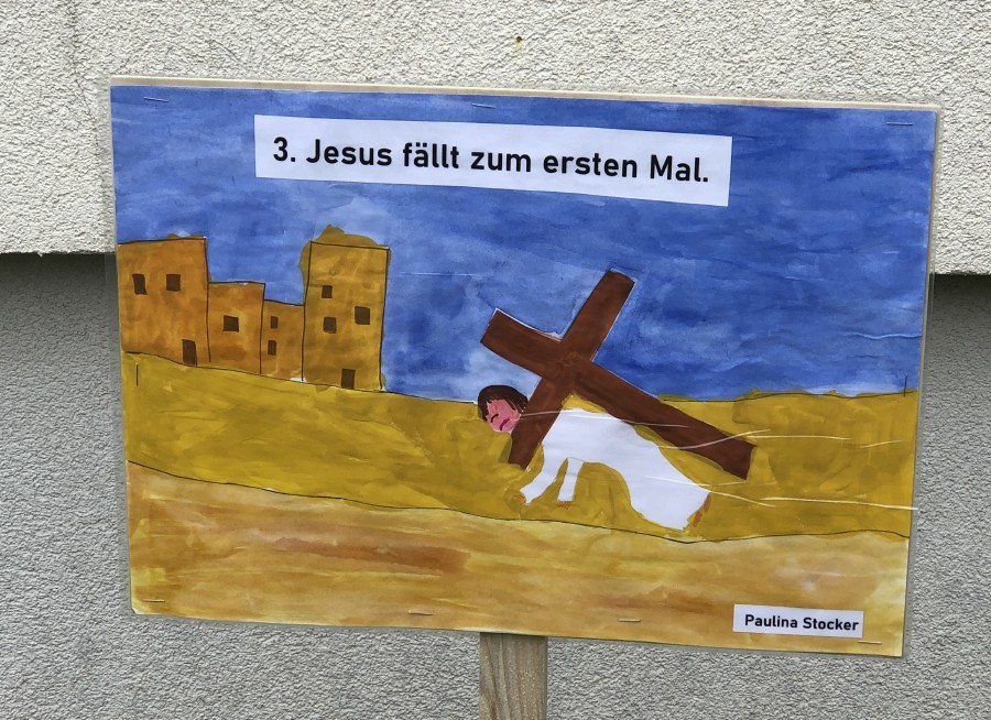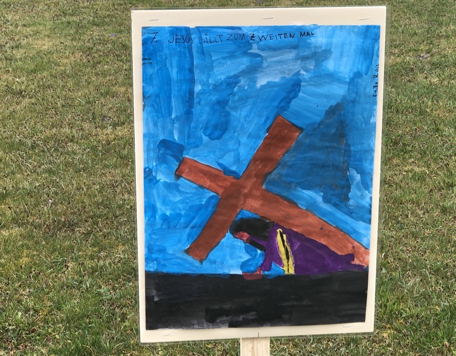 In diesem Jahr haben die Erstkommunionskinder den Kinderkreuzweg selbst gestaltet. Jedes Kind durfte zwei Stationen gestalten. Mit den Eltern haben sie sich in das Thema vertieft. Daraus entstanden wunderschöne Kunstwerke. Diese visualisierten den Leidensweg Jesu nochmal gut.