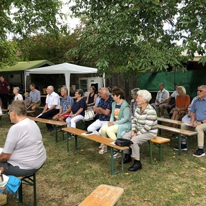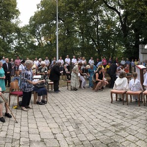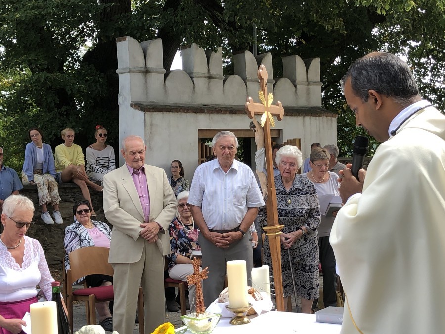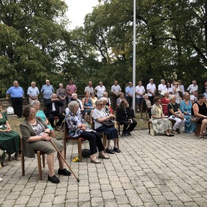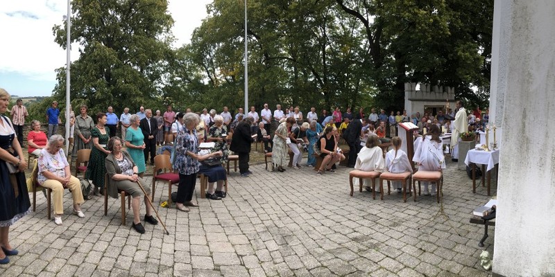 Als Abschluss des Marienfeiertages fand dann am Abend noch eine Andacht im Schloßgarten statt, zu der alle Gläubigen des Pfarrverbandes geladen waren und auch zahlreich teilnahmen.