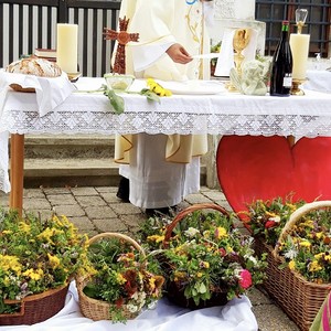 Im Rahmen des Gottesdienstes fand auch die Kräuterweihe statt – danke den tüchtigen Damen für das Sammeln und Binden der Kräuter, die von den Gottesdienstbesuchern auch mitgenommen werden durften.