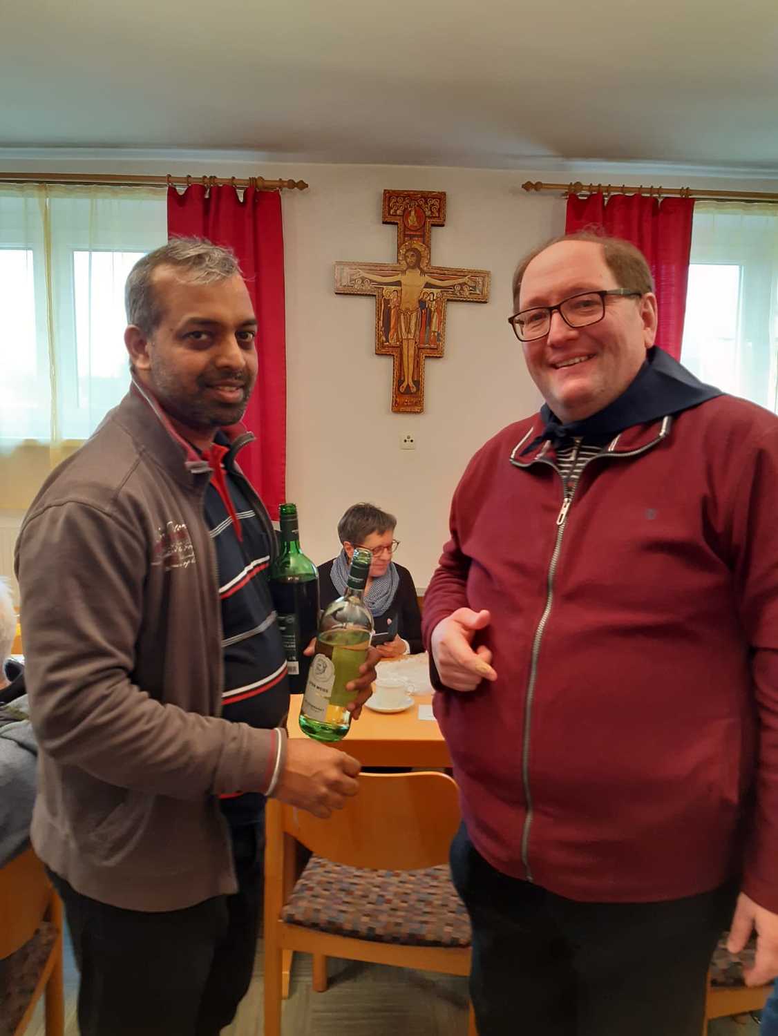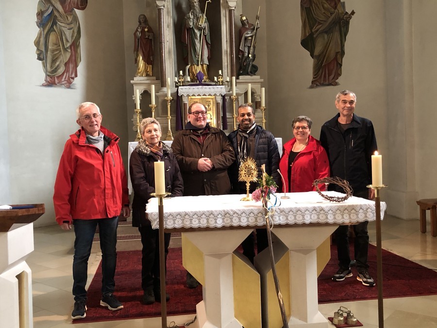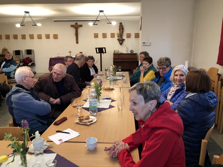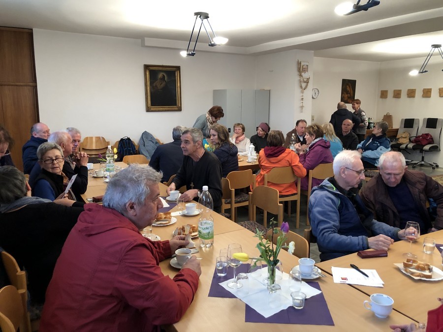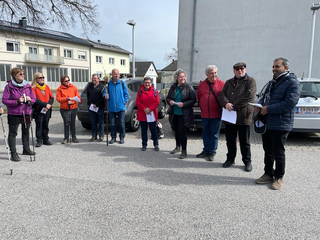Kan. Roman Schwarz bedankte sich für alle Vorbereitungsarbeiten, für die inhaltliche Gestaltung und für die gute Gemeinschaft beim Pilgern. Dieser Dank galt auch Pfarrer Shinto und den Mitarbeiterinnen der Pfarre Kobersdorf, welche überraschend zu einer Agape einluden.