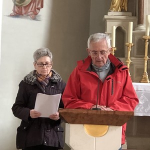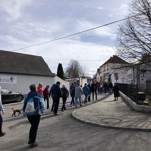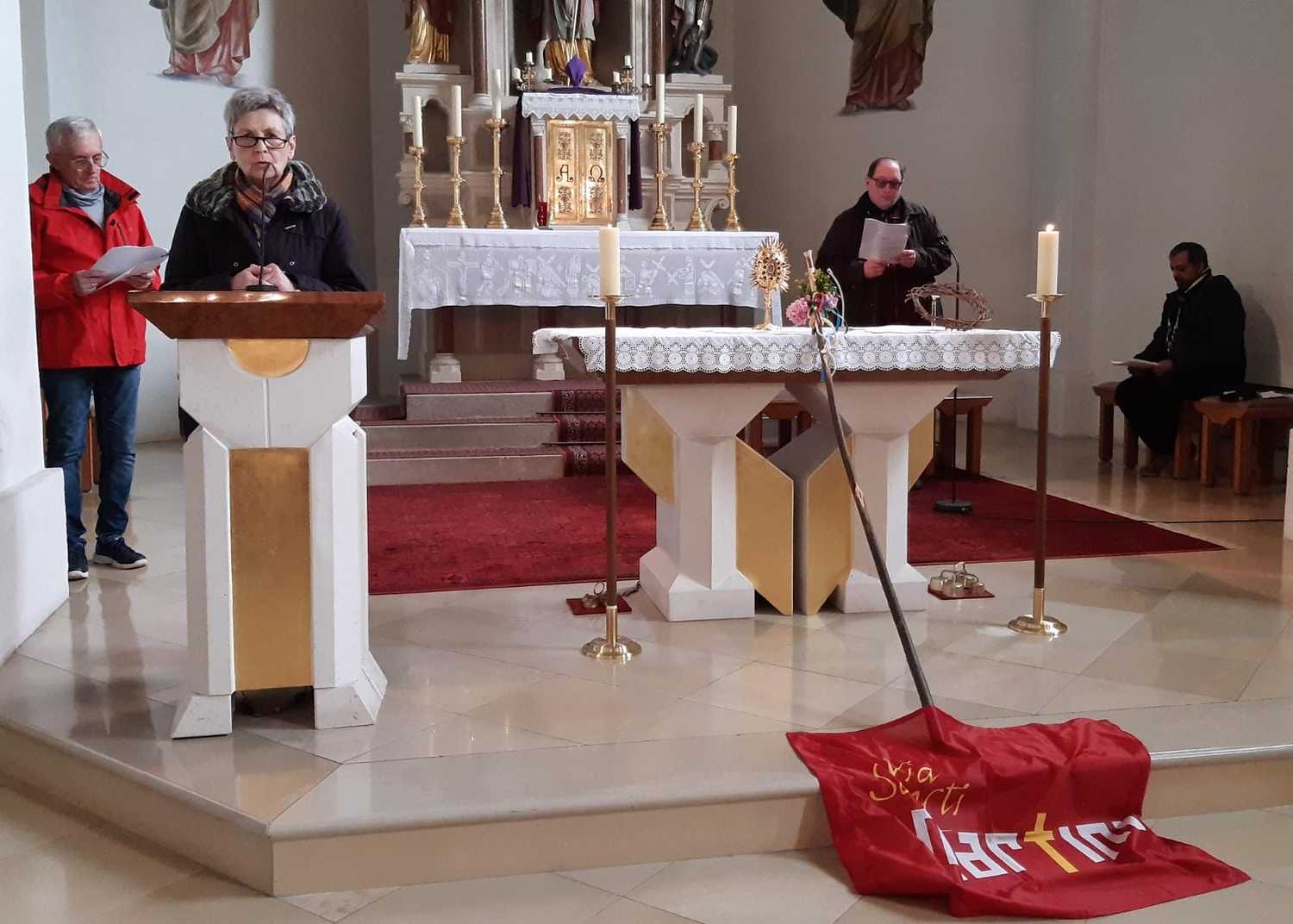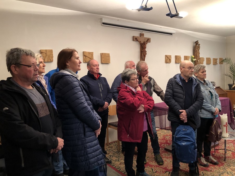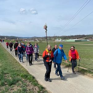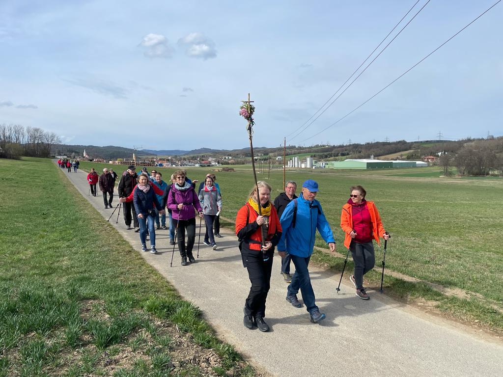 In der Pfarrkirche Markt Sankt Martin feierten die Pilgerinnen und Pilger eine Kreuzwegandacht. Die Verknüpfung des Leidensweges Christi mit dem eigenen Leben und mit Bibelstellen aus den Evangelien war berührend und hat nachdenklich gemacht.