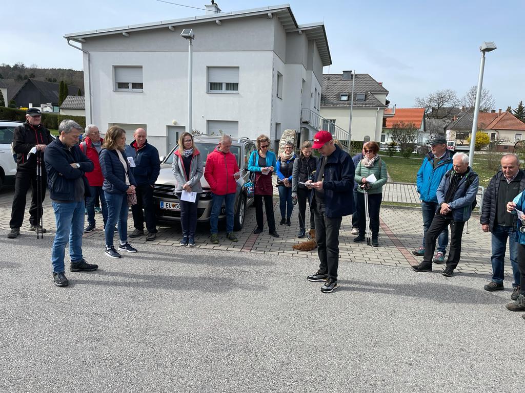 Vorstandsmitglied Karl Woditsch konnte etwa 60 Pilgerinnen und Pilger, unter ihnen den Vorsitzenden Kan.Mag.Roman Schwarz und Ortspfarrer Mag.Shinto Michael Varghese vor dem Pfarrhof in Kobersdorf begrüßen. Für den Pilgerweg gab es die Anregung auf die Schönheit der Schöpfung zu achten und darüber nachzudenken worin der heilige Martin ein Vorbild für uns sein kann.
