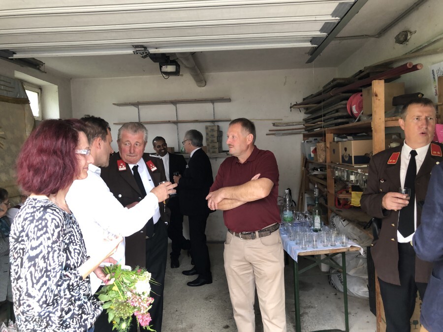 Nach dem Gottesdienst wurde zu einer Agape geladen. Trotz des Regens verweilten die Besucher bei netten Gesprächen und einem guten Miteinander.