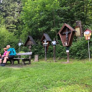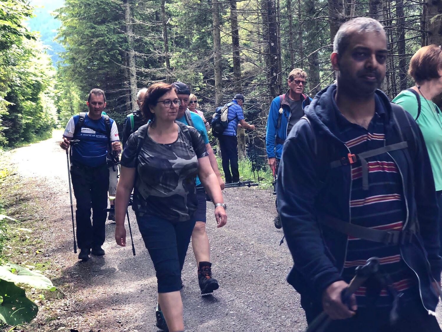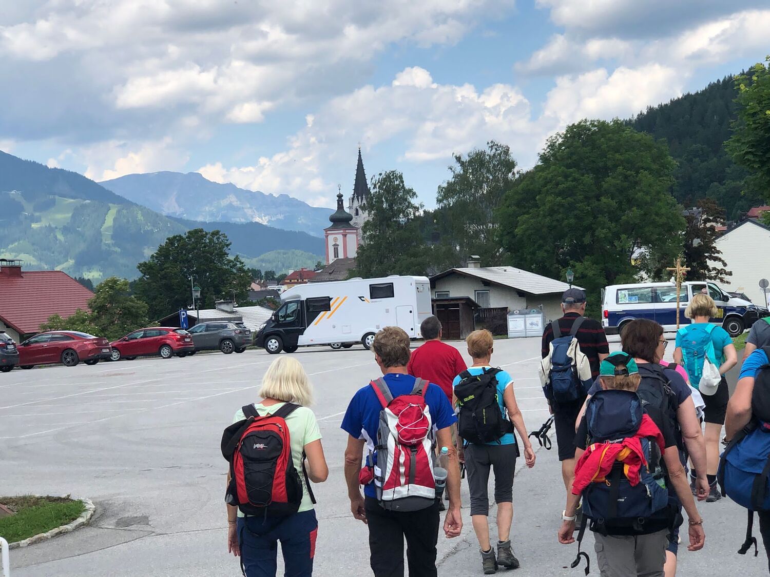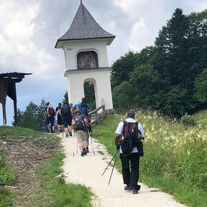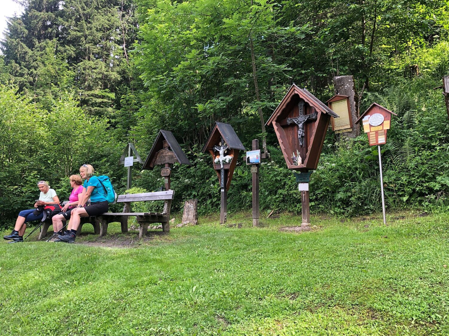 Der 3. Tag, 7.7. startete schon um 6:00 mit einem sehr guten Frühstück und guter Stimmung. Alle freuten sich schon auf die weitere Pilgerreise zur Basilika nach Mariazell. Die letzten 19km führten uns vorbei an zahlreichen Erinnerungstafeln der vielen Pilger aus der Vergangenheit. Unsere Gebete und Lesungen auf dem Weg zur Gottesmutter, die vielen Gespräche und Gedanken an die Abschlussmesse in der Basilika ließen den einen oder anderen Schmerz in den Beinen vergessen.