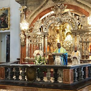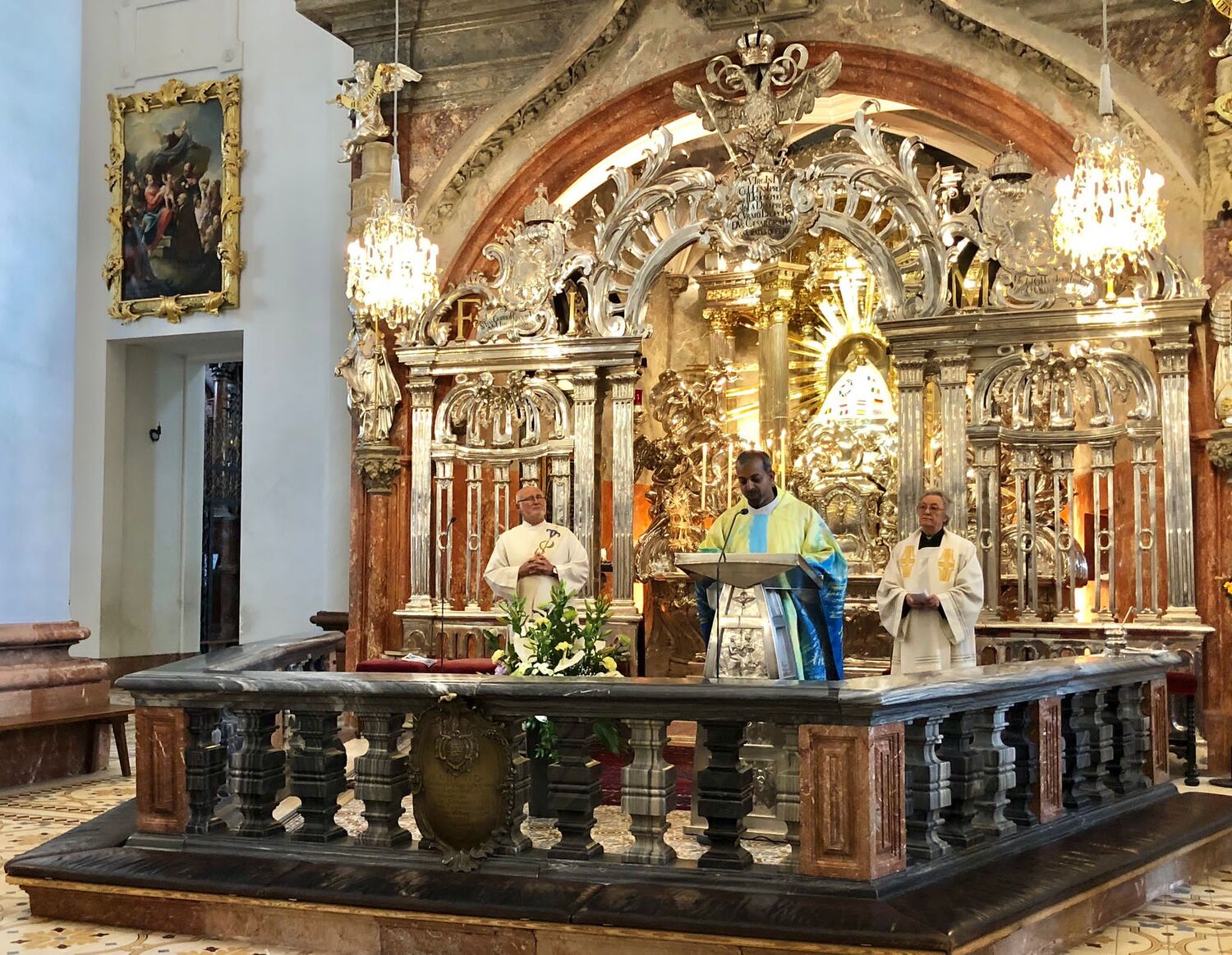 Alle haben den Weg nach Mariazell geschafft und um 14:00 trafen wir uns mit den Buswallfahrer:innen aus dem Pfarrverband. Die Messe in der Basilika vor dem Gnadenaltar der Mutter Gottes wurde gemeinsam gefeiert und mit dem Lied und unserem Motto „Lasst uns miteinander, singen, loben, preisen den Herrn“ beendet.