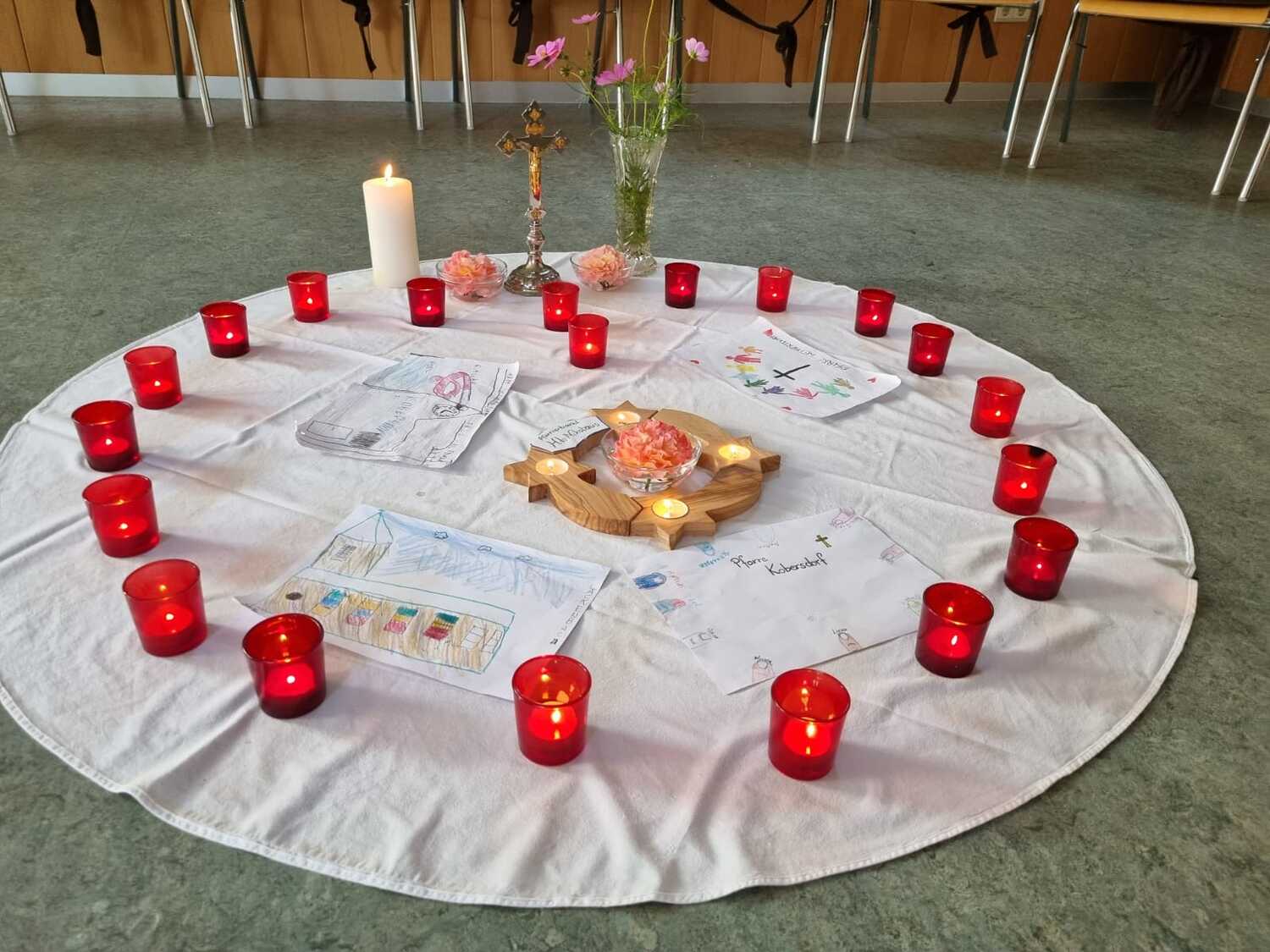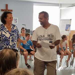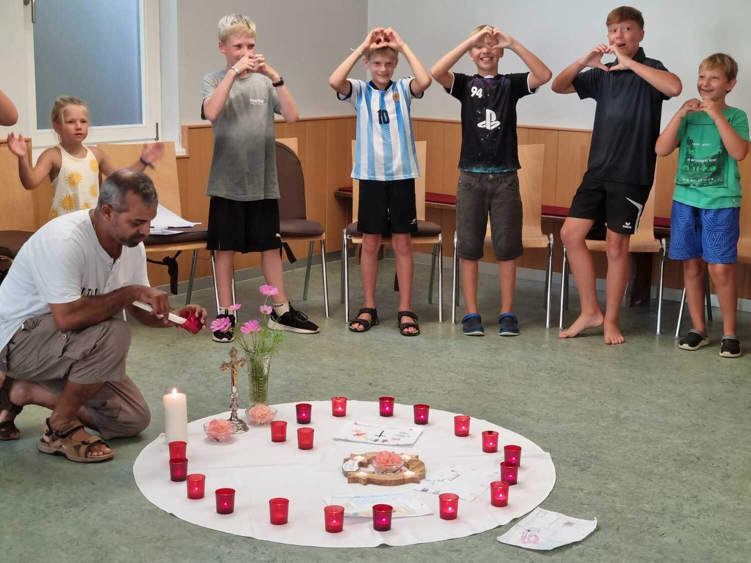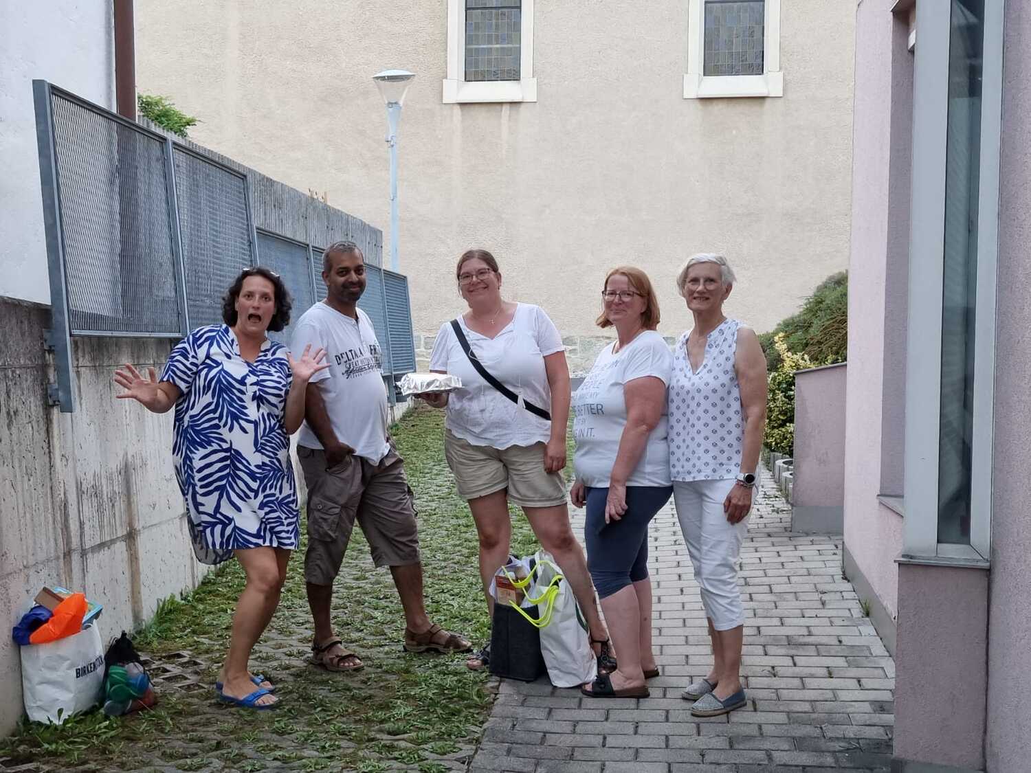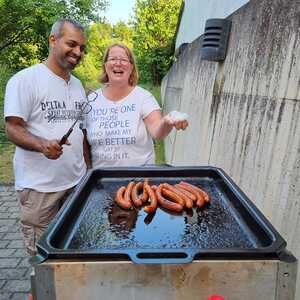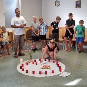 Um 17 Uhr trafen wir uns zu einer gemeinsamen Andacht im Pfarrsaal, wo wir zusammen unser Abendgebet sprachen. Anschließend wurde im Hof gegrillt und wir konnten beim gemeinsamen Abendessen den Tag ausklingen lassen.