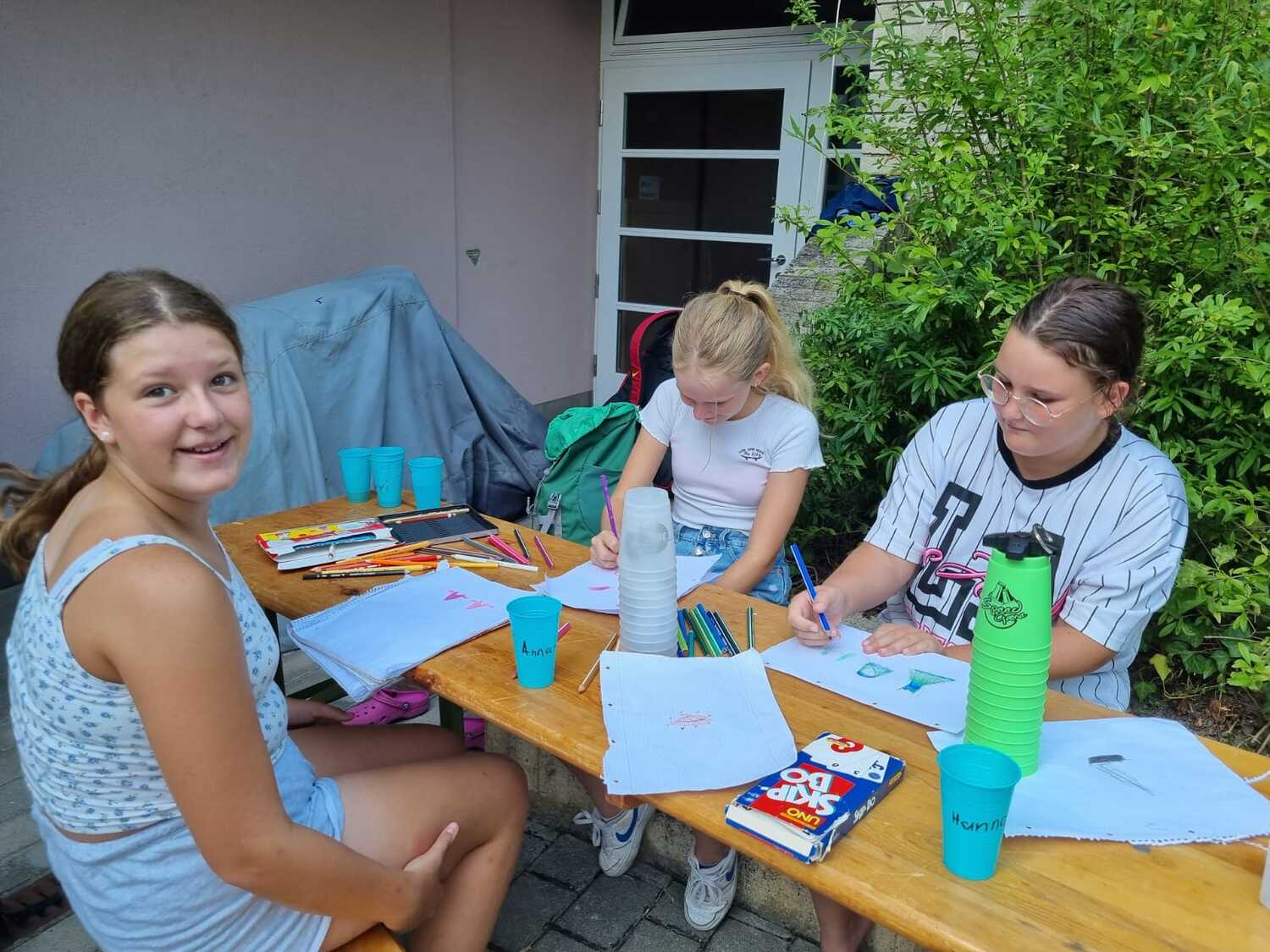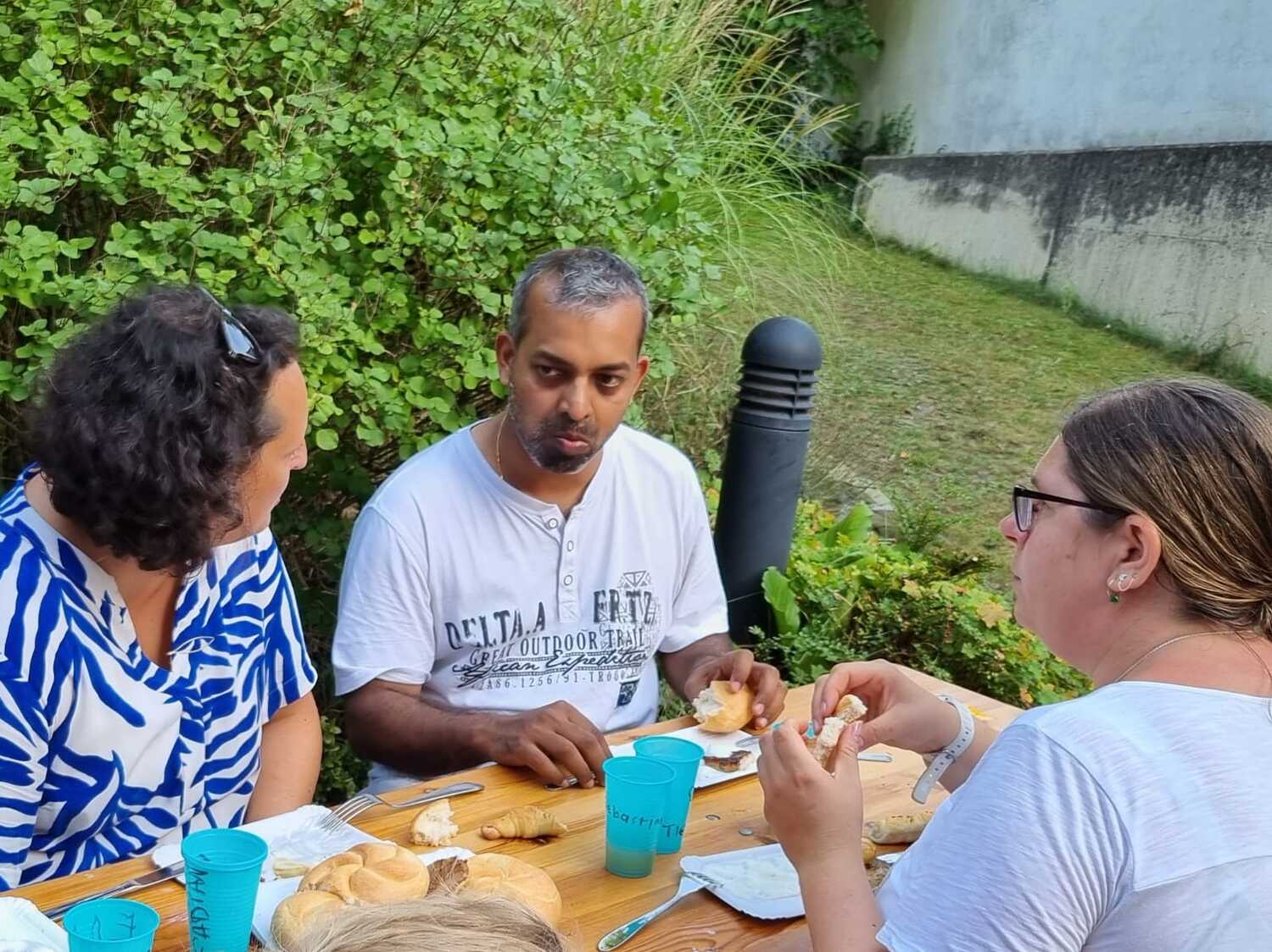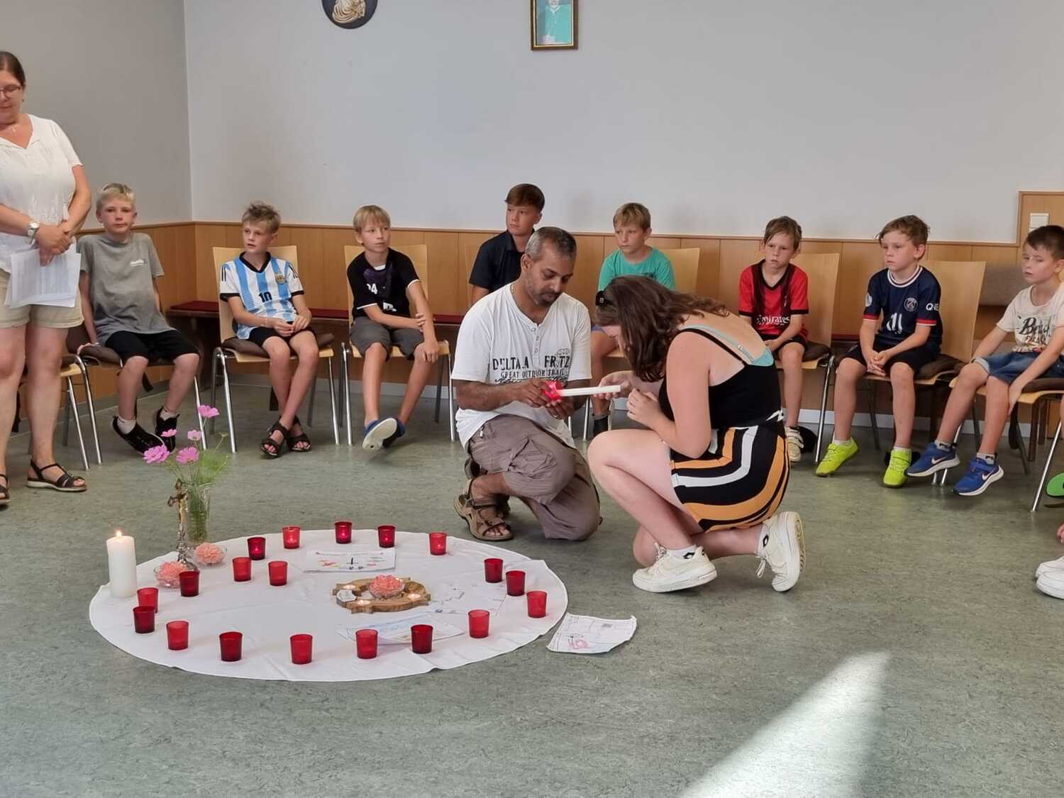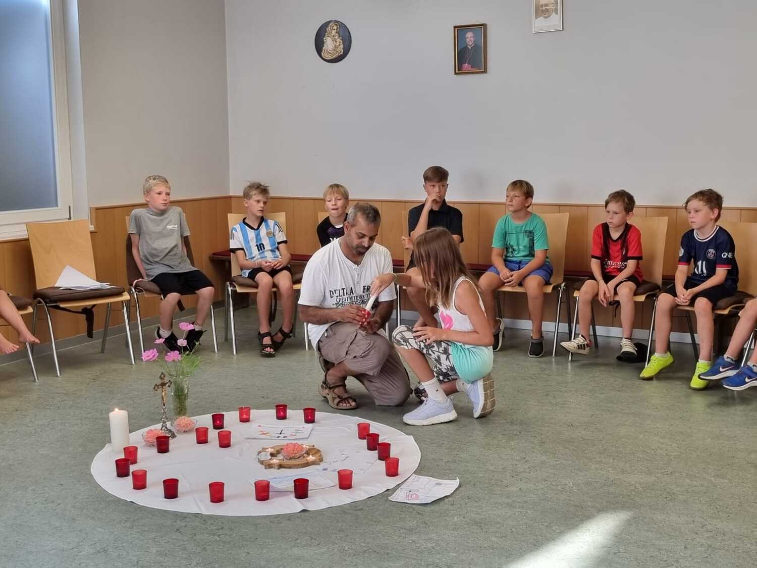 Um 17 Uhr trafen wir uns zu einer gemeinsamen Andacht im Pfarrsaal, wo wir zusammen unser Abendgebet sprachen. Anschließend wurde im Hof gegrillt und wir konnten beim gemeinsamen Abendessen den Tag ausklingen lassen.