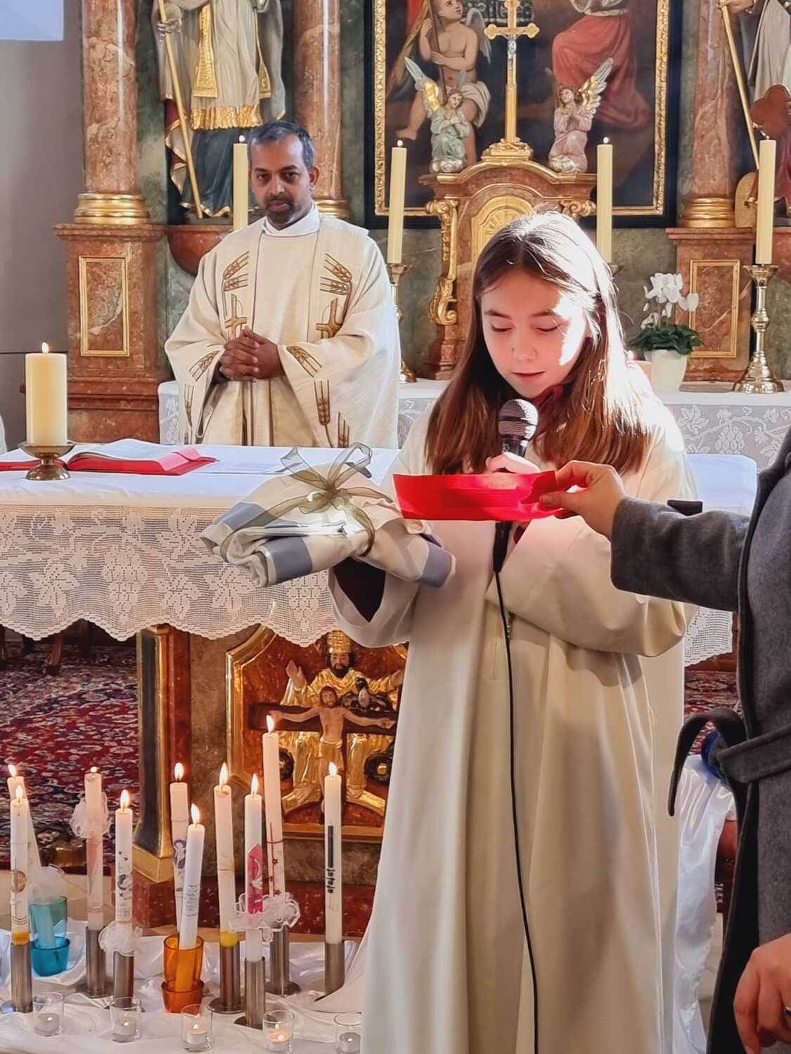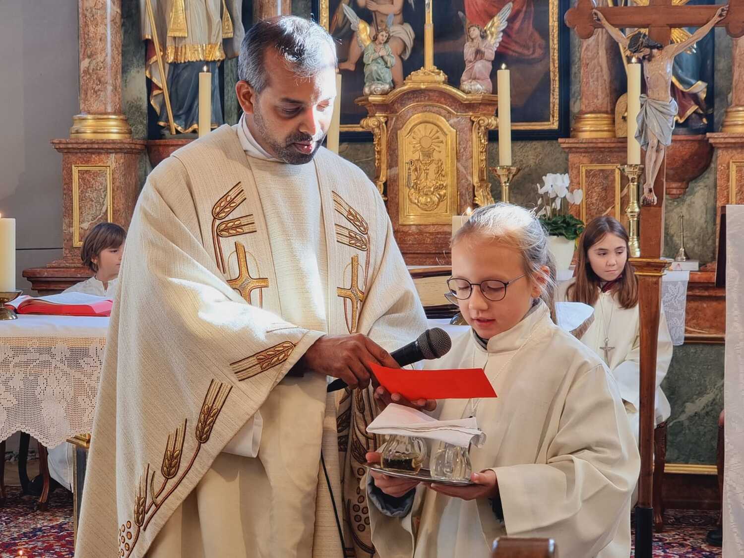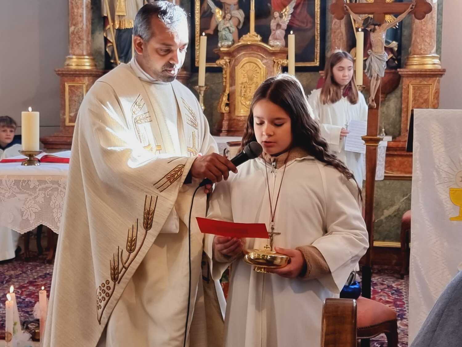 Pfarrer Shinto dankte den Kindern und Jugendlichen für ihren unermüdlichen Einsatz, und die Verantwortung, die sie für diese wichtigen Aufgaben übernehmen. Er erzählte aber auch von Christus, der auch unser König genannt wird. Er als unser König dient den anderen und das Wichtigste dabei ist für ihn die Liebe. Und durch diese Liebe hat uns Jesus Christus ALLE zu Königen gemacht.