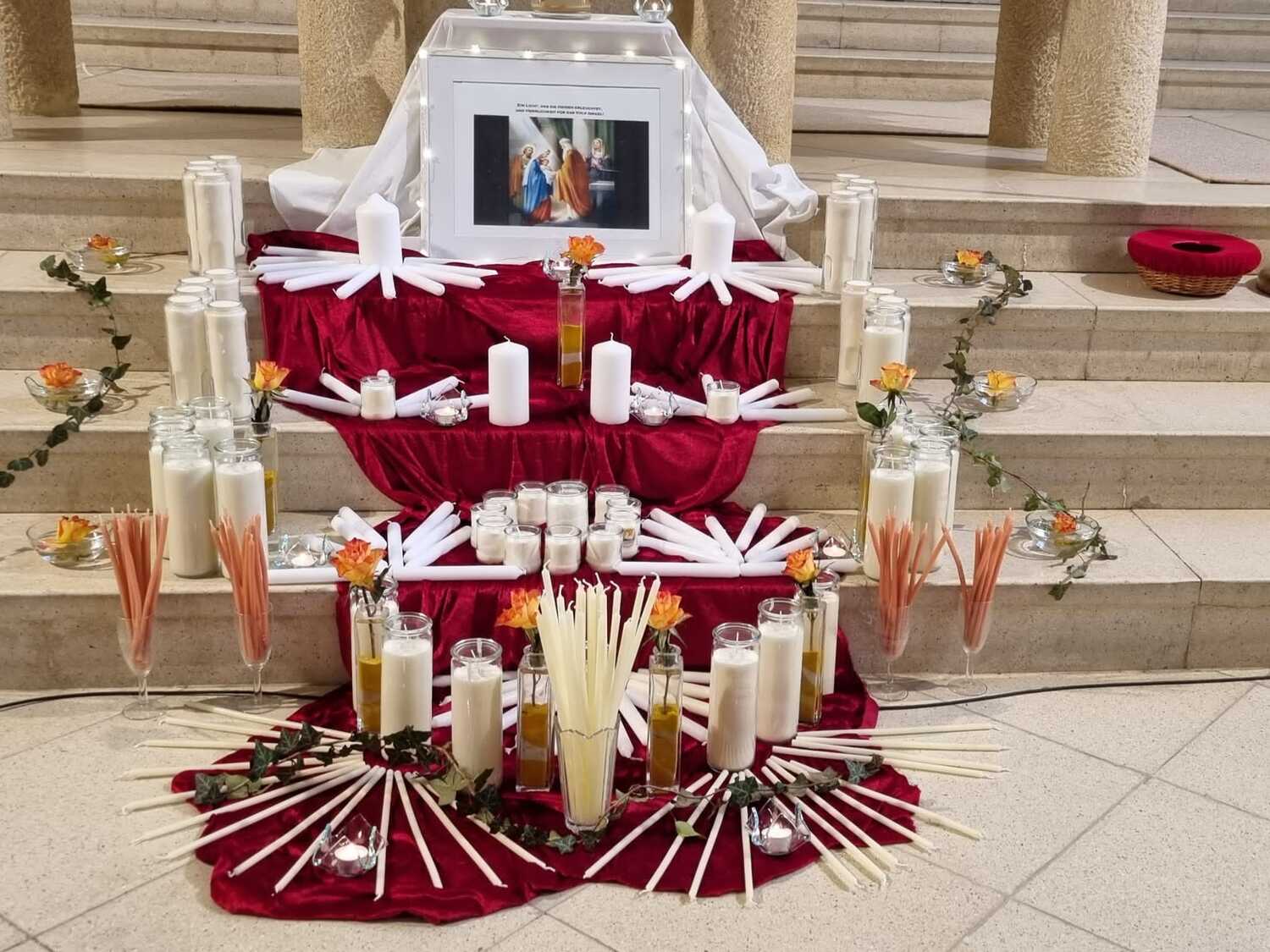 Die brennenden Kerzen sind Symbol für Jesus als „das Licht der Welt“.