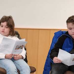 Am Donnerstag, dem 7. März luden die Erstkommunionkinder zu einem Kreuzweg in den Pfarrgarten Lackenbach ein. Wegen des unbeständigen Wetters wurde die Andacht in den Pfarrsaal verlegt.