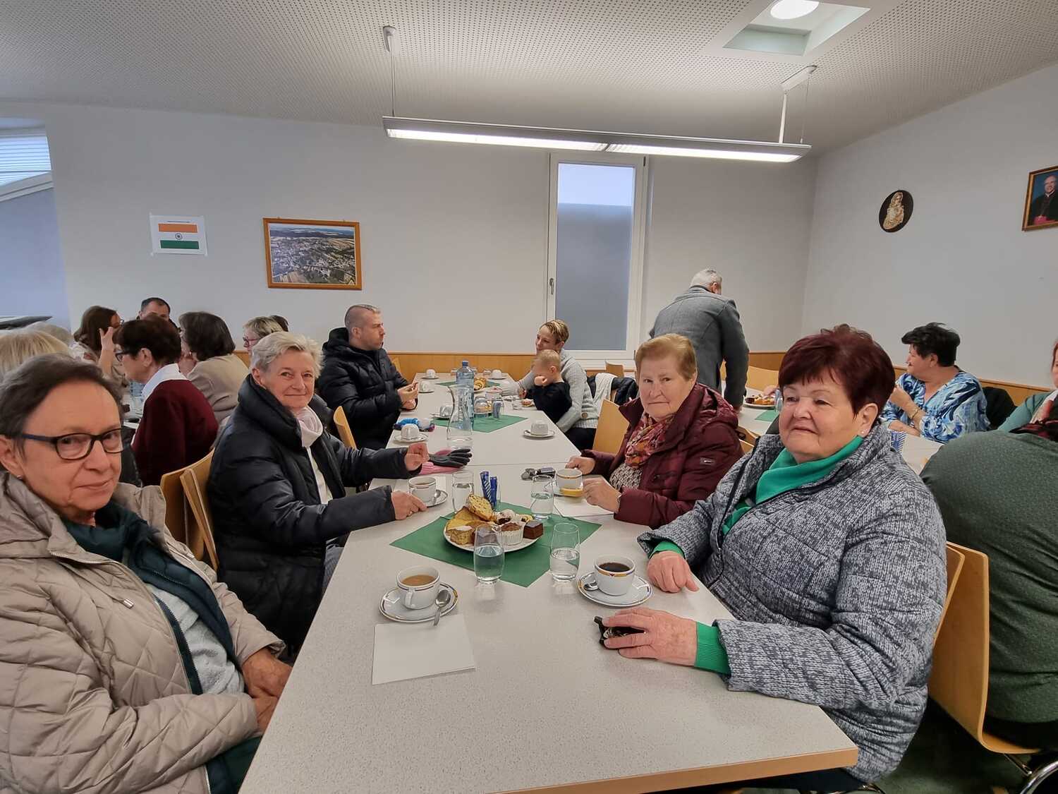 Köstliche Mehlspeisen und wärmender Kaffee lockten viele Menschen zum gemütlichen Zusammensein. Verschiedene Gespräche vertiefen das Gemeinschaftsgefühl und auch so manche neuen Kontakte können hergestellt werden.