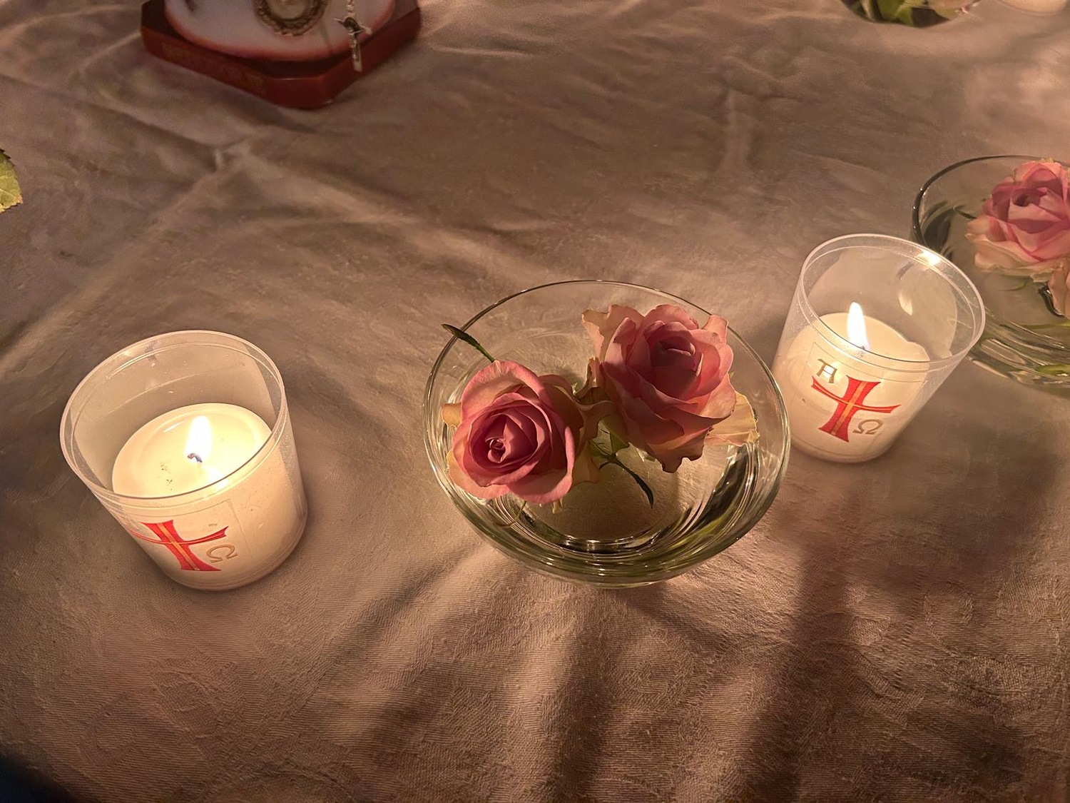 In der Predigt wurden uns erstmal die historischen Wurzeln und die Entstehung des Rosenkranzes nähergebracht. Wir erhielten jedoch auch die Botschaft, dass wir durch die Rosenkranzgesätzchen immer wieder die Chance erhalten, zu erkennen, dass Jesus Christus bei uns ist und was der Kern seiner Botschaft und damit unseres Glaubens ist.