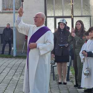 Nach dem Gottesdienst am Vormittag wurden von Diakon Zach im Beisein der Gottesdienstbesucher, der Freiwilligen Feuerwehr, der Musikkapelle und der Ministranten die Gräber gesegnet und anschließend beim Kriegerdenkmal zum Gedenken an die vielen vermissten und verstorbenen Kameraden der beiden Weltkriege ein Kranz niedergelegt.