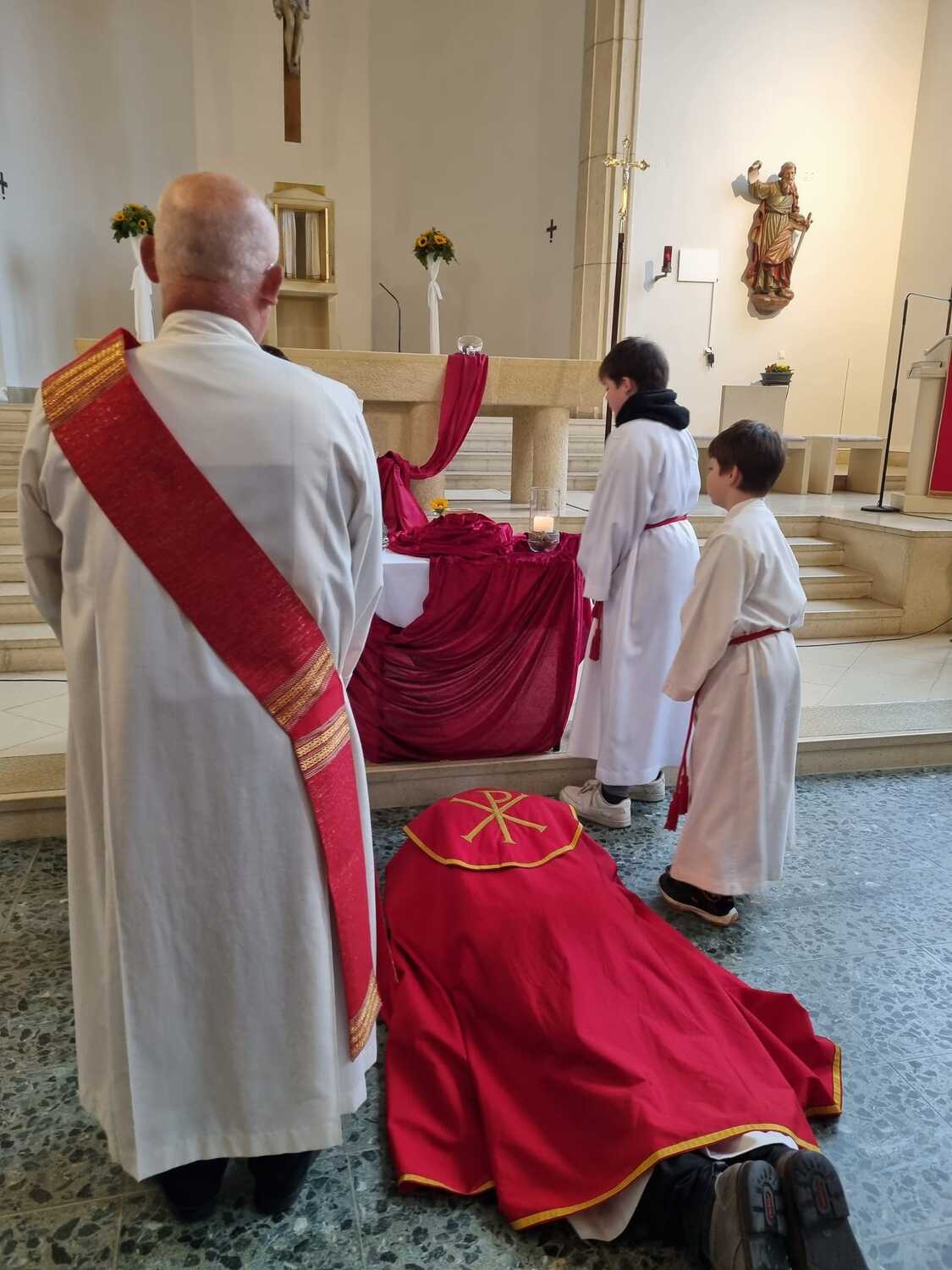 Am Gründonnerstag gedenken wir beim feierlichen Gottesdienst zum letzten Abendmahl der Einsetzung der Eucharistie. In der Fußwaschung zeigen wir die dienende Liebe, wie es uns Jesus vorgemacht hat.