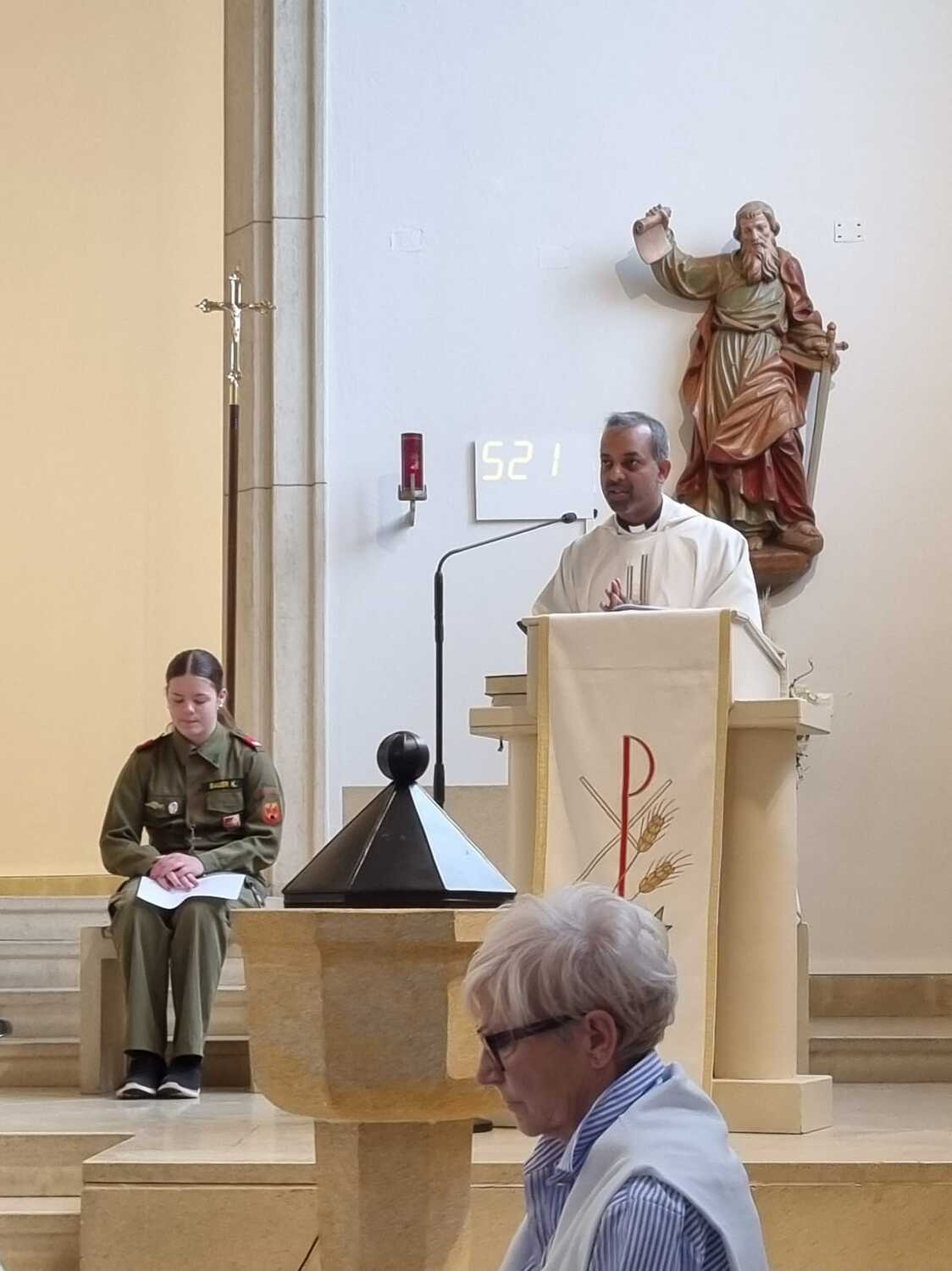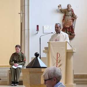 Die Feuerwehr Lackenbach findet sich aber nicht nur rund um den 04. Mai in der Kirche ein, sondern begleitet auch die Fronleichnams- und Allerheiligenprozession in der Pfarrgemeinde. Die Mitglieder*innen übernehmen dabei auch immer sehr gerne die Lektorendienste und sind somit noch aktiver in den Messablauf eingebunden, so wie auch in diesem Jahr am Tag der Feuerwehr, welchen 20 aktive und 8 Feuerwehrjugendmitglieder beiwohnten. Noch ein schöner Akt der Verbundenheit ist allerdings, dass einige Mitglieder der Feuerwehrjugend auch im Dienst als Ministrant*innen stehen und mit ihren Uniformen an diesem besonderen Tag ihre Arbeit beim Altar während der Messfeier verrichten durfen.
