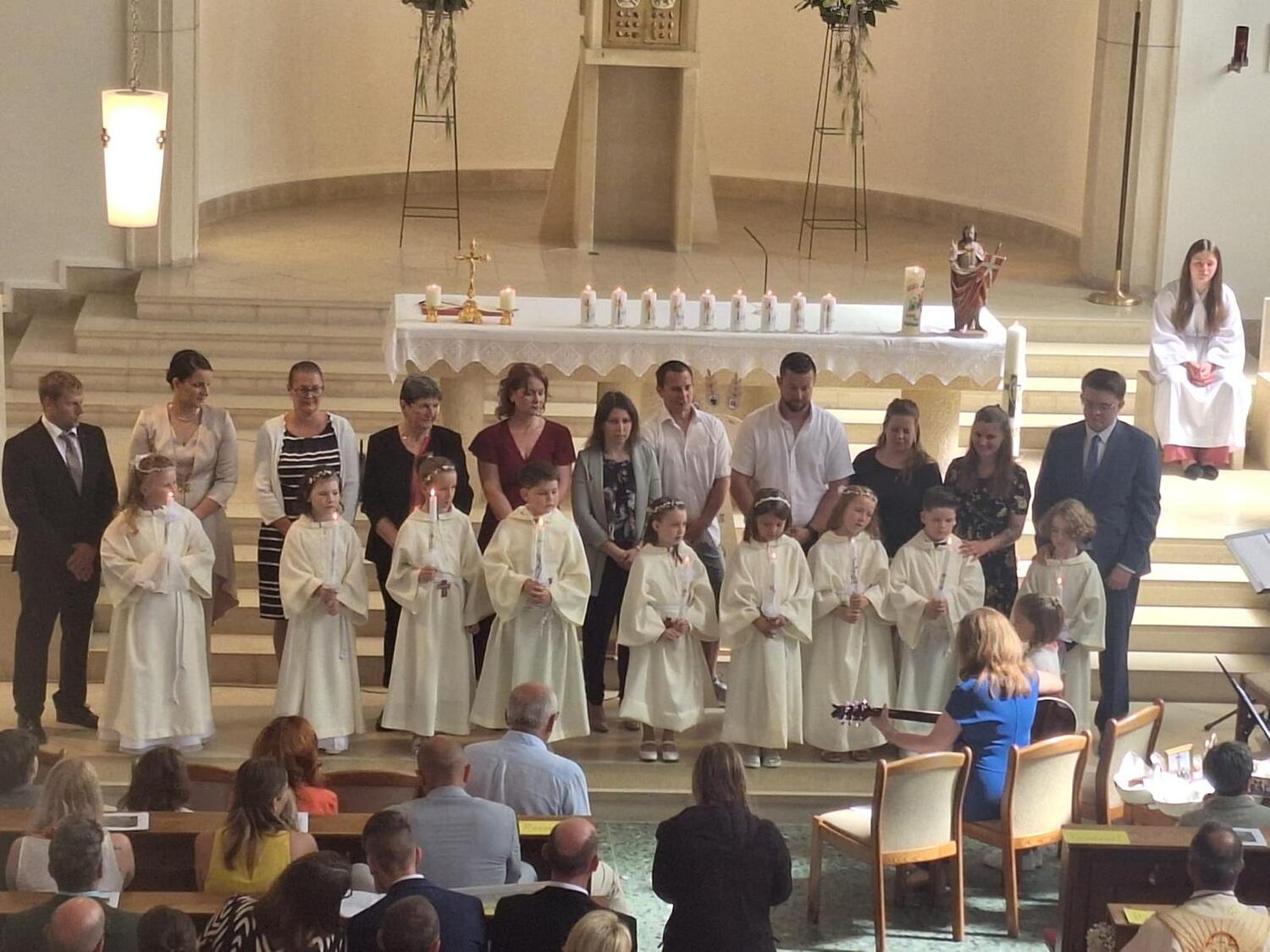 Im Rahmen eines feierlichen Gottesdienstes erneuerten die Erstkommunionkinder das Taufversprechen und empfingen zum ersten Mal die Heilige Kommunion, somit wurden sie in die Mahlgemeinschaft Jesu aufgenommen.