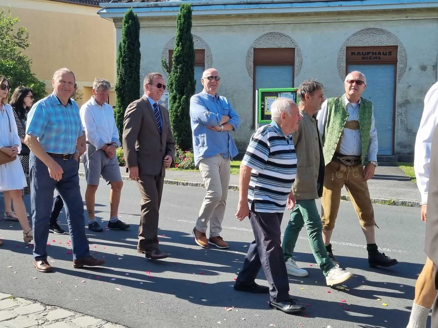 Begonnen hat das „Hochfest des Leibes und Blutes Christi“ in der Kirche. Die anschließende Prozession führte uns zu 4 Altären und dann wieder zum Schlußsegen zurück in die Kirche. Musikalisch umrahmt wurde der Umzug von der Musikkapelle Lackenbach.