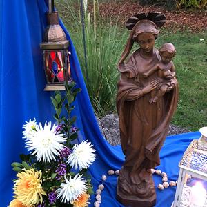 Bei der 3. Station – vor der Marienstatue beim Pfarrhof - wurden alle unsere Erfahrungen, die im Schatten und im Licht unserer Wege stehen, in unsere Gebete aufgenommen.