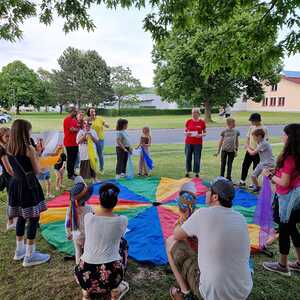 Mit einer Kerzen- und Laternenwanderung ging es nun zum Kirchenhof der katholischen Kirche. Diese war bereits in Regenbogenfarben sehr feierlich beleuchtet. Das Musikprogramm mit Bläsern und der Sängergruppe der Familie Tröscher war sehr vielfältig und unterhaltsam.