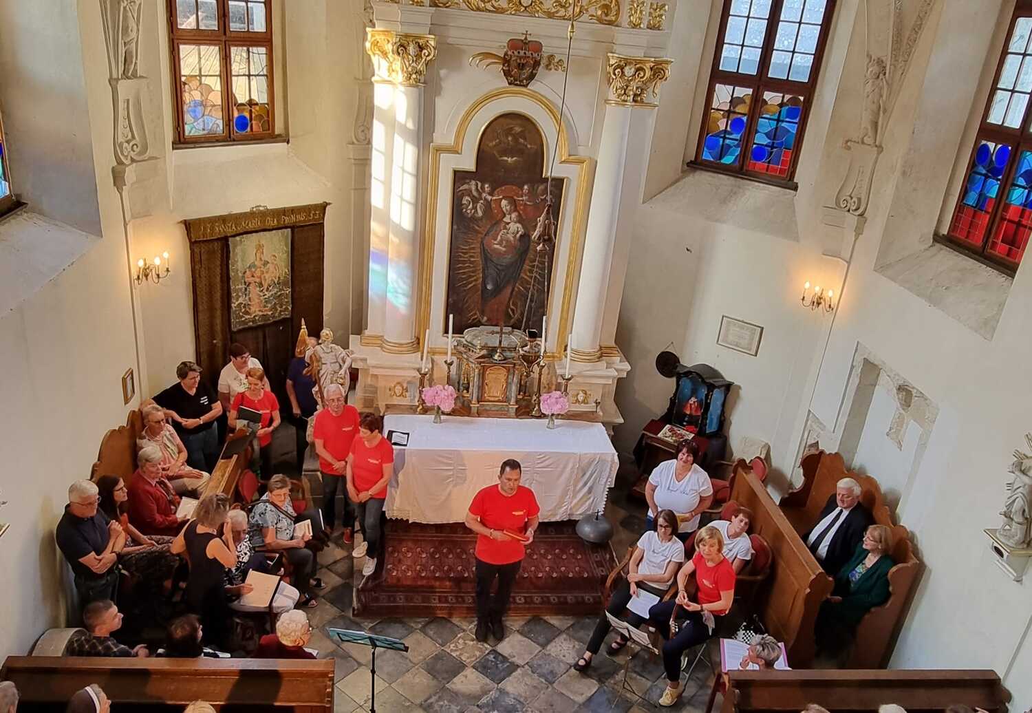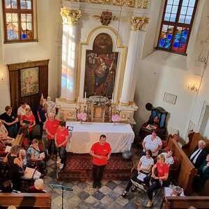Nach der Kindersegnung zogen die zahlreichen Kinder zum evangelischen Gemeindezentrum, um dort ein großartiges Kinderprogramm nach dem Motto „Lasst die Kinder zu mir kommen“ gestalten und genießen zu können. Die nächste Station führte die Besucher:innen zur Schlosskapelle des bekannten Wasserschlosses von Kobersdorf. Es begrüßte uns die Eigentümerin Frau Anna Schlanitz-Bolldorf. Im Zuge des geschichtlichen Vortrages und anschließender Führung konnte die historische Schlosskapelle besucht werden. Ganz besonders freuten wir uns über den Besuch von Sr. Consolata Supper, Provinzoberin vom Orden der Schwestern vom göttlichen Erlöser der Stadtpfarre Eisenstadt Oberberg. Musikalische Beiträge der Kirchenchöre Oberpetersdorf und Kobersdorf sowie besinnliche Meditationen in der Schlosskapelle rundeten diesen Programmpunkt ab.