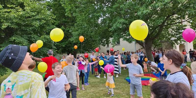 Nach kurzem Fußweg in Richtung evangelische Kirche wurden wir mit Glockengeläut am Martin Luther Platz von den Kindern empfangen. Eine köstliche Agape war bereits von der katholischen Jugend vorbereitet. Nach dem Steigen der Luftballone zum Zeichen des Friedens wurde in der evangelischen Kirche das weitere Programm dargeboten.
