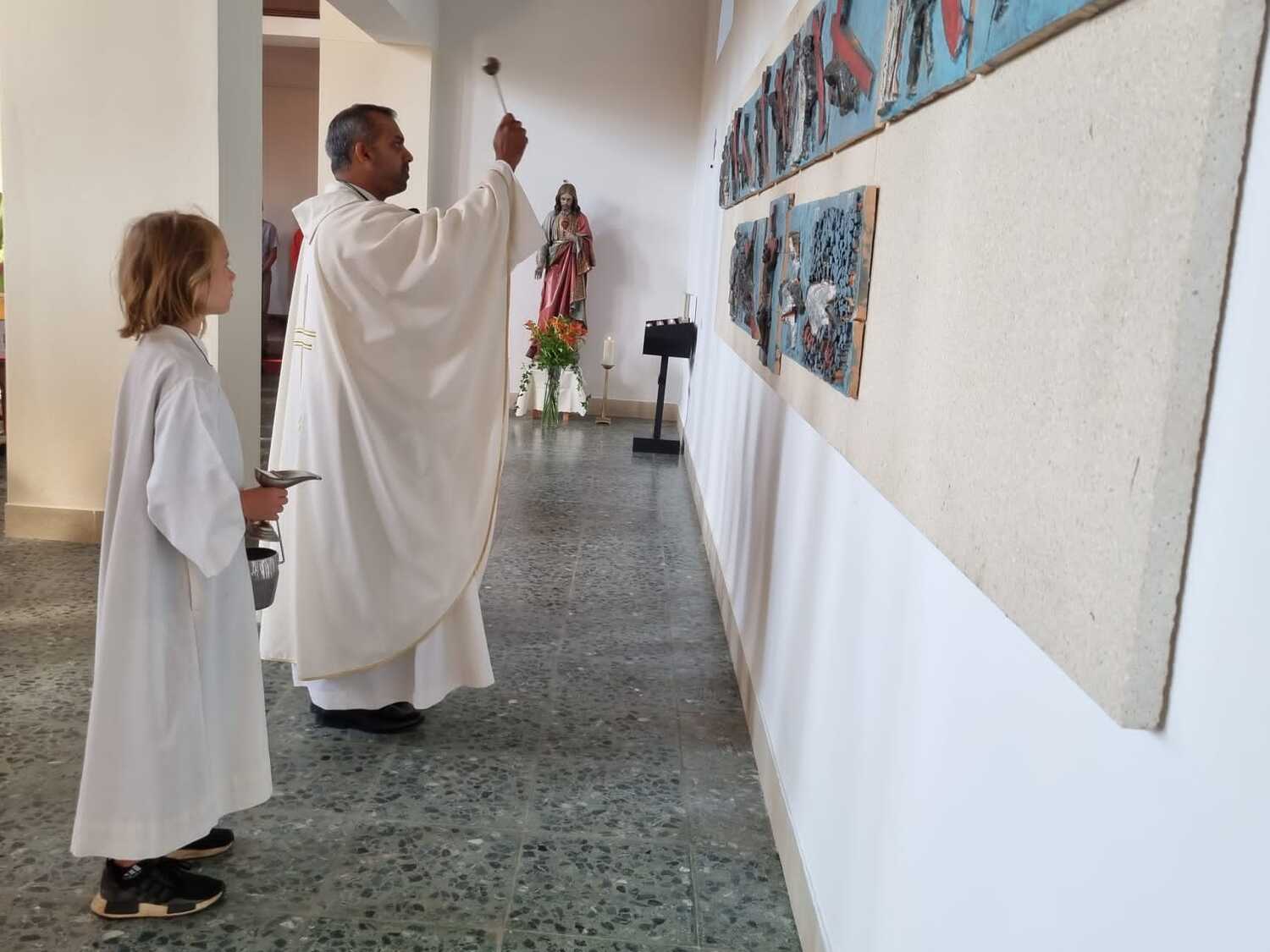 Nachdem der Kircheninnenraum nun in neuem Glanz erstrahlt, war es eine besondere Freude, dass gerade am Patroziniumsfest – zu Ehren der Apostel Petrus und Paulus - der erste Gottesdienst wieder in der Pfarrkirche gefeiert werden konnte und Pfarrer Shinto die Segnung des neu renovierten Kirchenraumes übernahm.