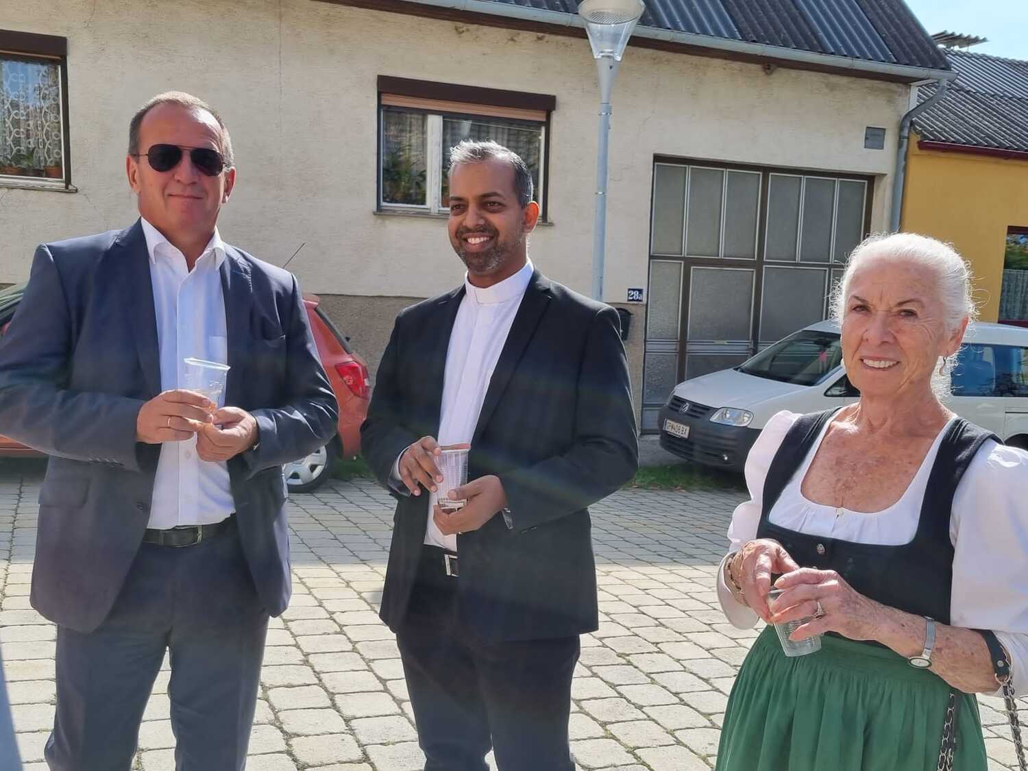 Bei strahlendem Wetter konnten die Gottesdienstbesucher noch bei einer Agape verweilen und bei Kuchen, Gebäck und Wein kam es noch zu einigen netten Begegnungen.