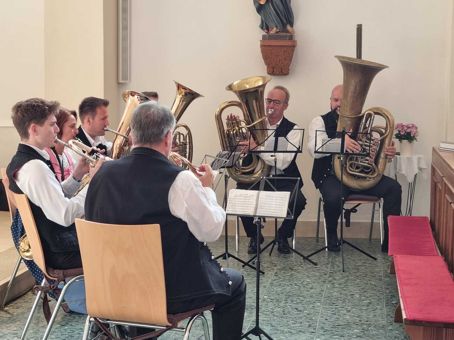 Pfarrer Shinto gratulierte im Namen der Pfarrgemeinde zum Jubiläum und wünscht weiterhin viel Freude und Einsatz um auch weiterhin das Kulturgut Blasmusik zu pflegen und zu erhalten. Gottes Segen möge die jungen Musiker dabei weiterhin auf allen Wegen begleiten.